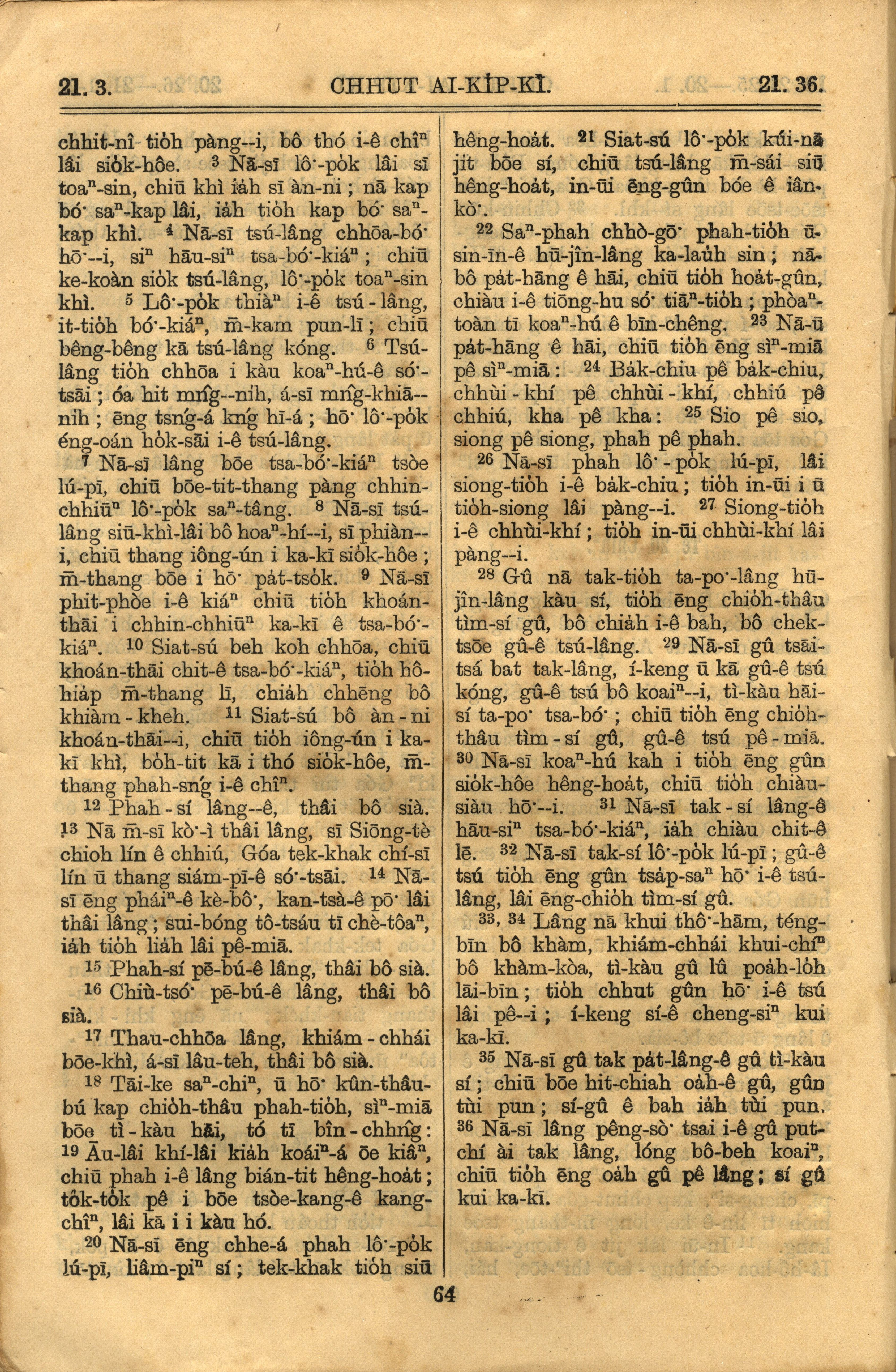 1921年羅馬字舊約全書 出埃及記 21 章 3 節到 21 章 36 節