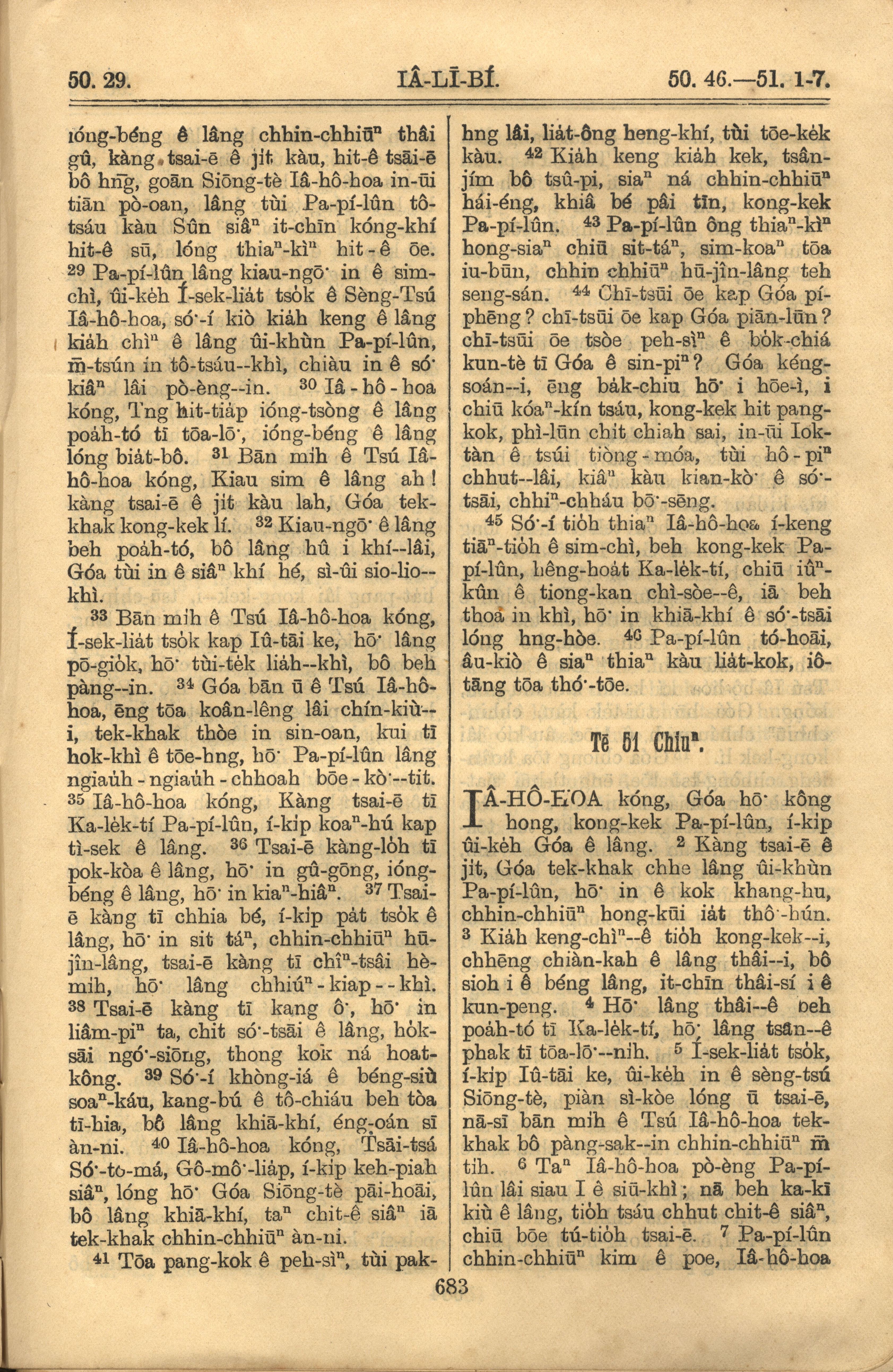 1921年羅馬字舊約全書 耶利米書 50 章 29 節到 51 章 7 節