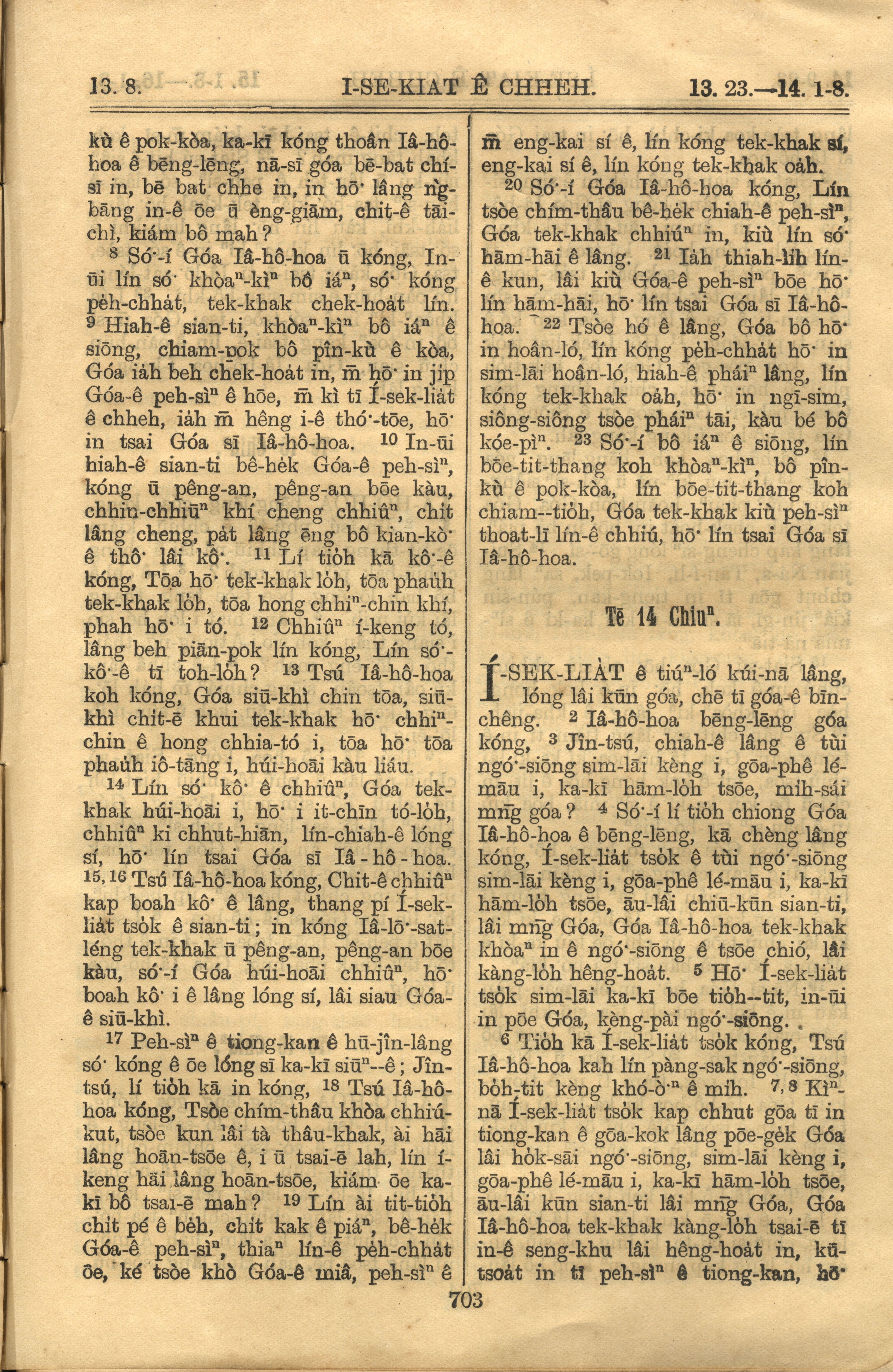 1921年羅馬字舊約全書 以西結書 13 章 8 節到 14 章 8 節