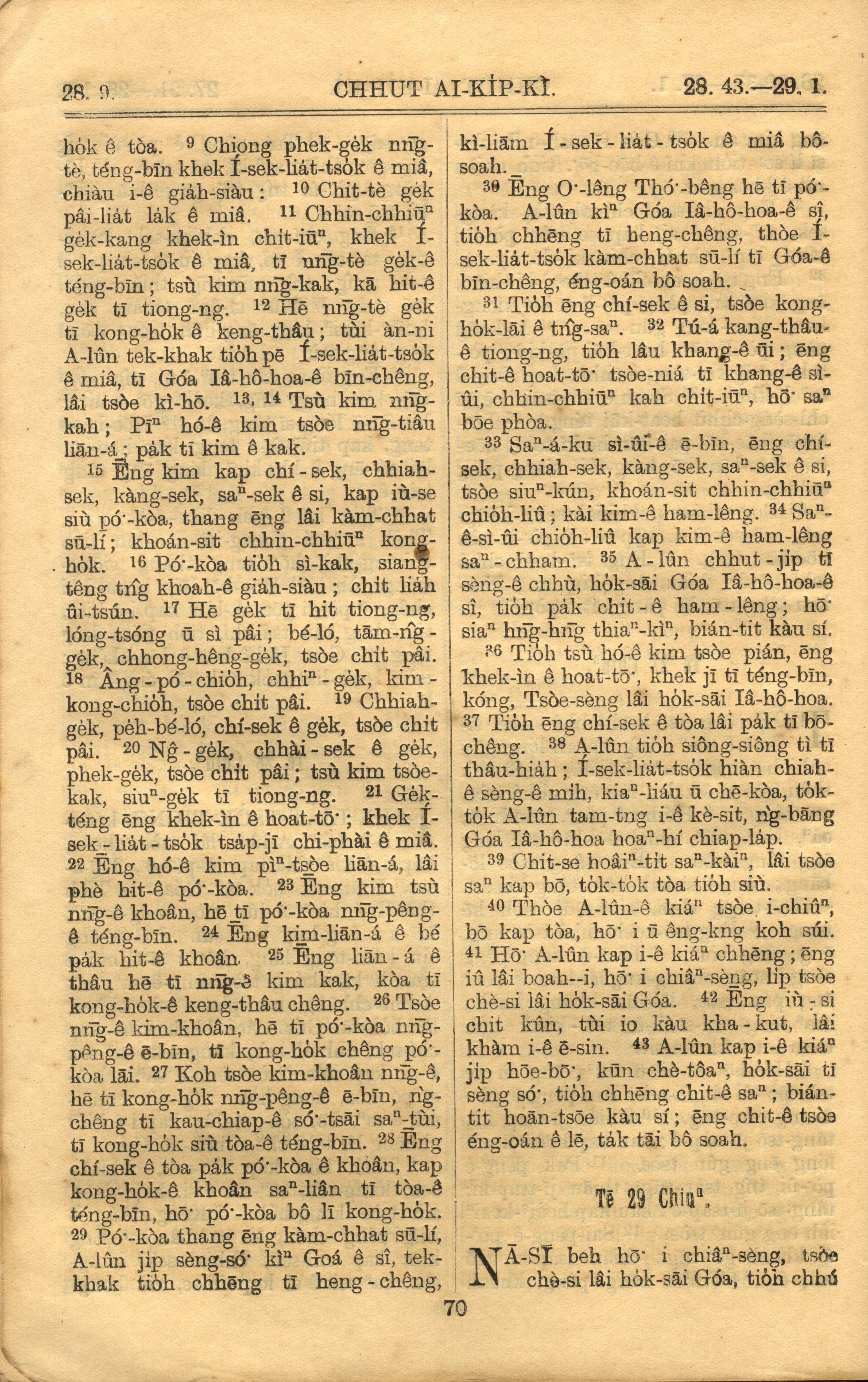 1921年羅馬字舊約全書 出埃及記 28 章 9 節到 29 章 1 節
