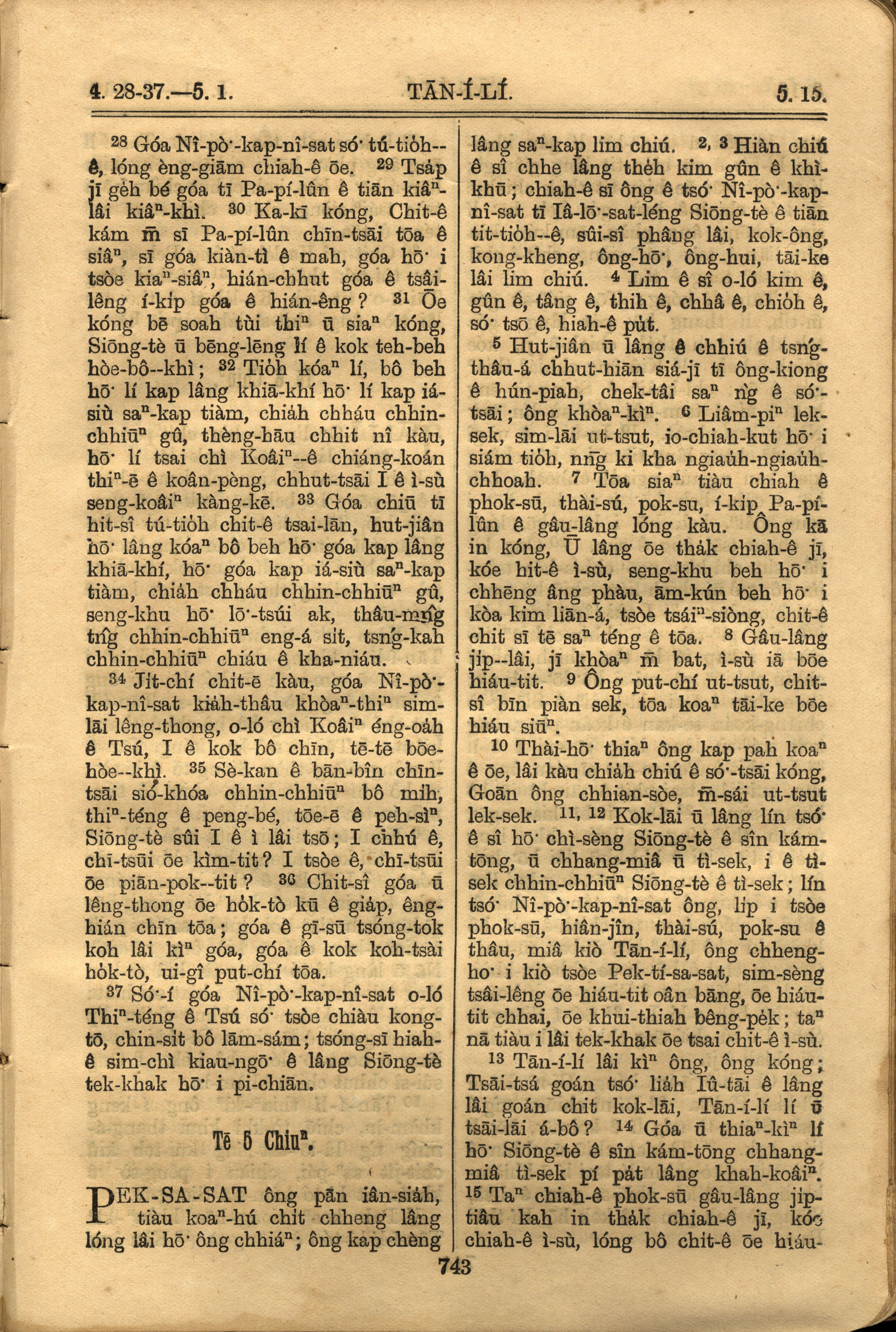 1921年羅馬字舊約全書 但以理書 4 章 28 節到 5 章 15 節