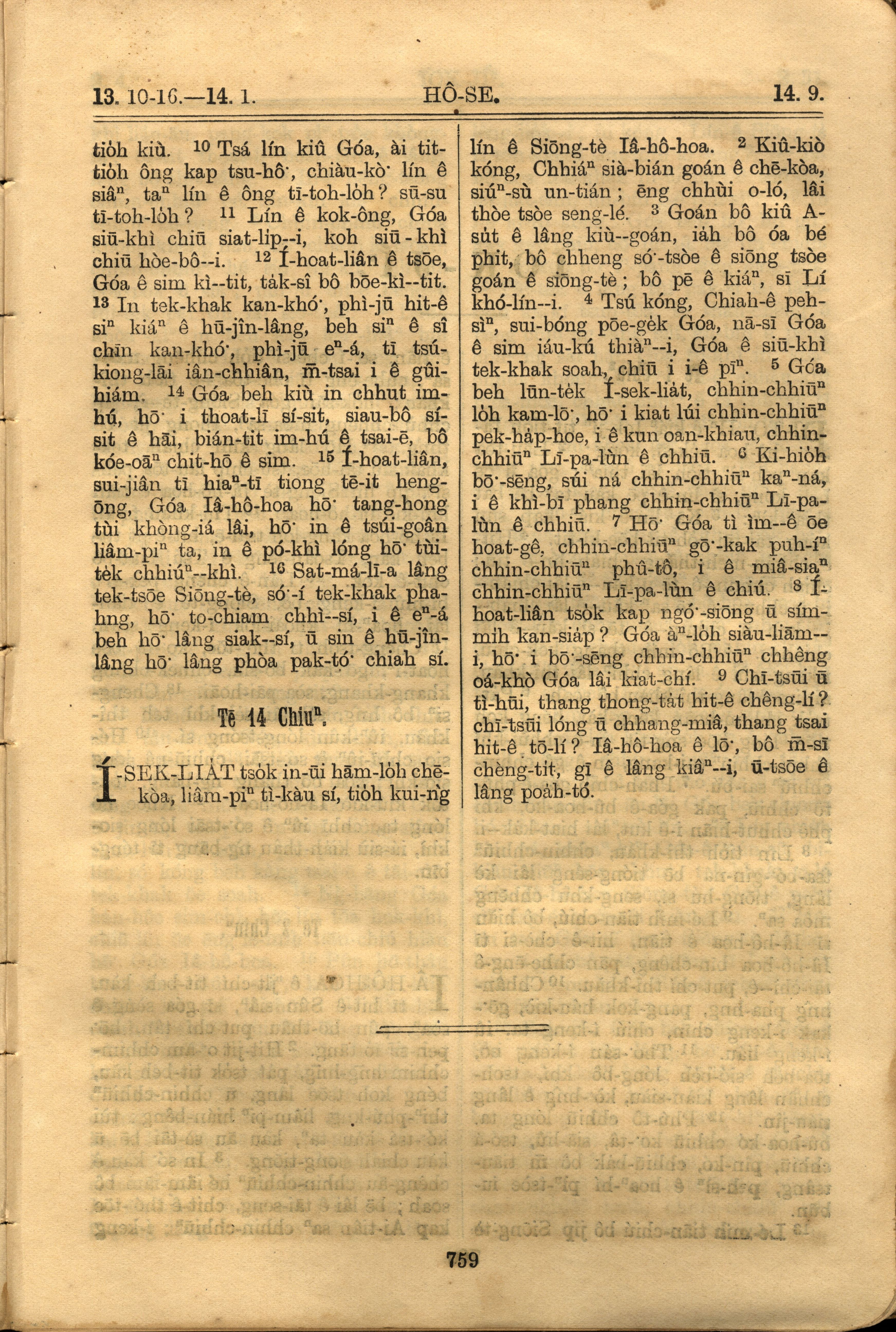 1921年羅馬字舊約全書 何西阿書 13 章 10 節到 14 章 9 節
