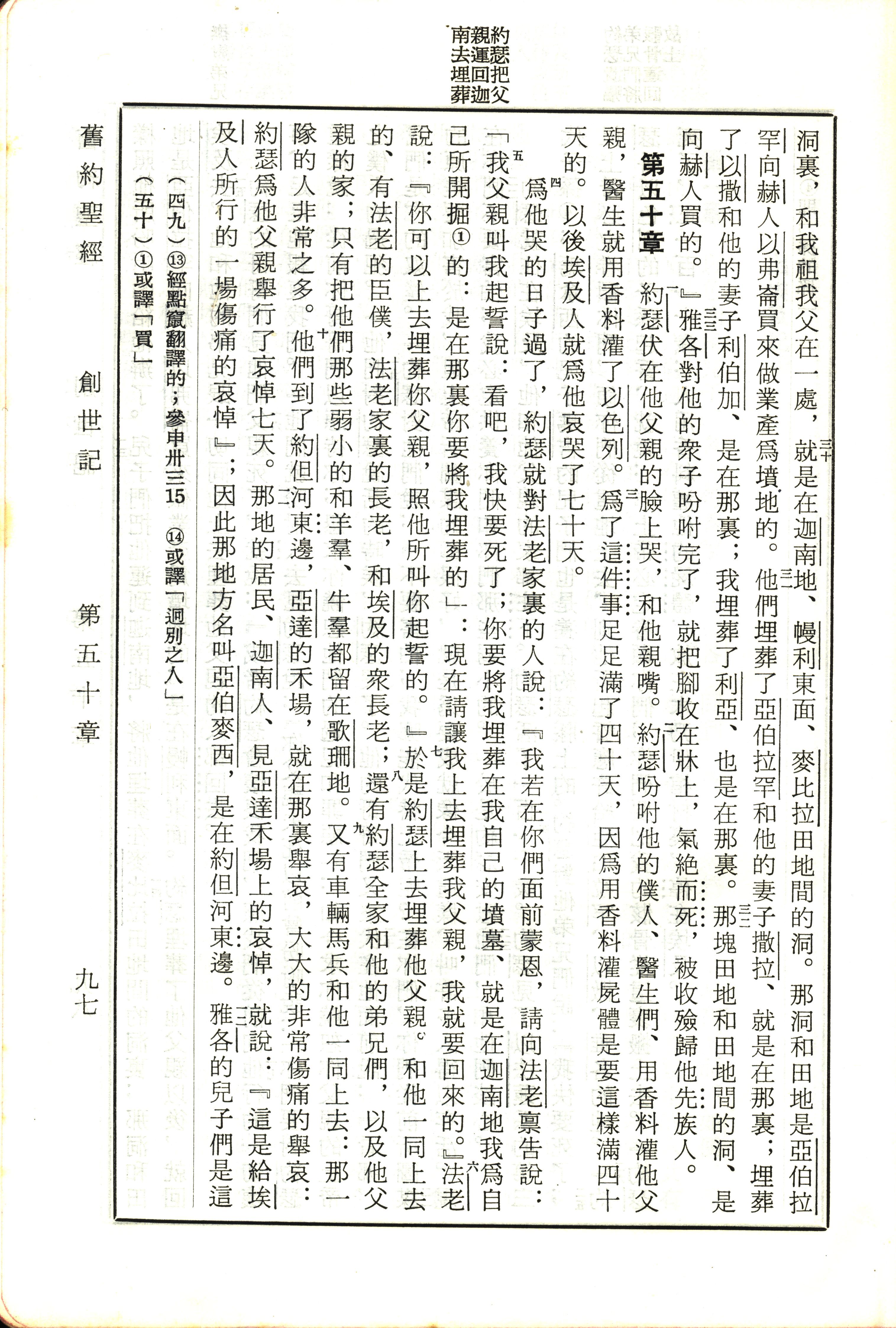 1970年新舊約全書(呂振中譯本) 創世記 49 章 30 節到 50 章 12 節