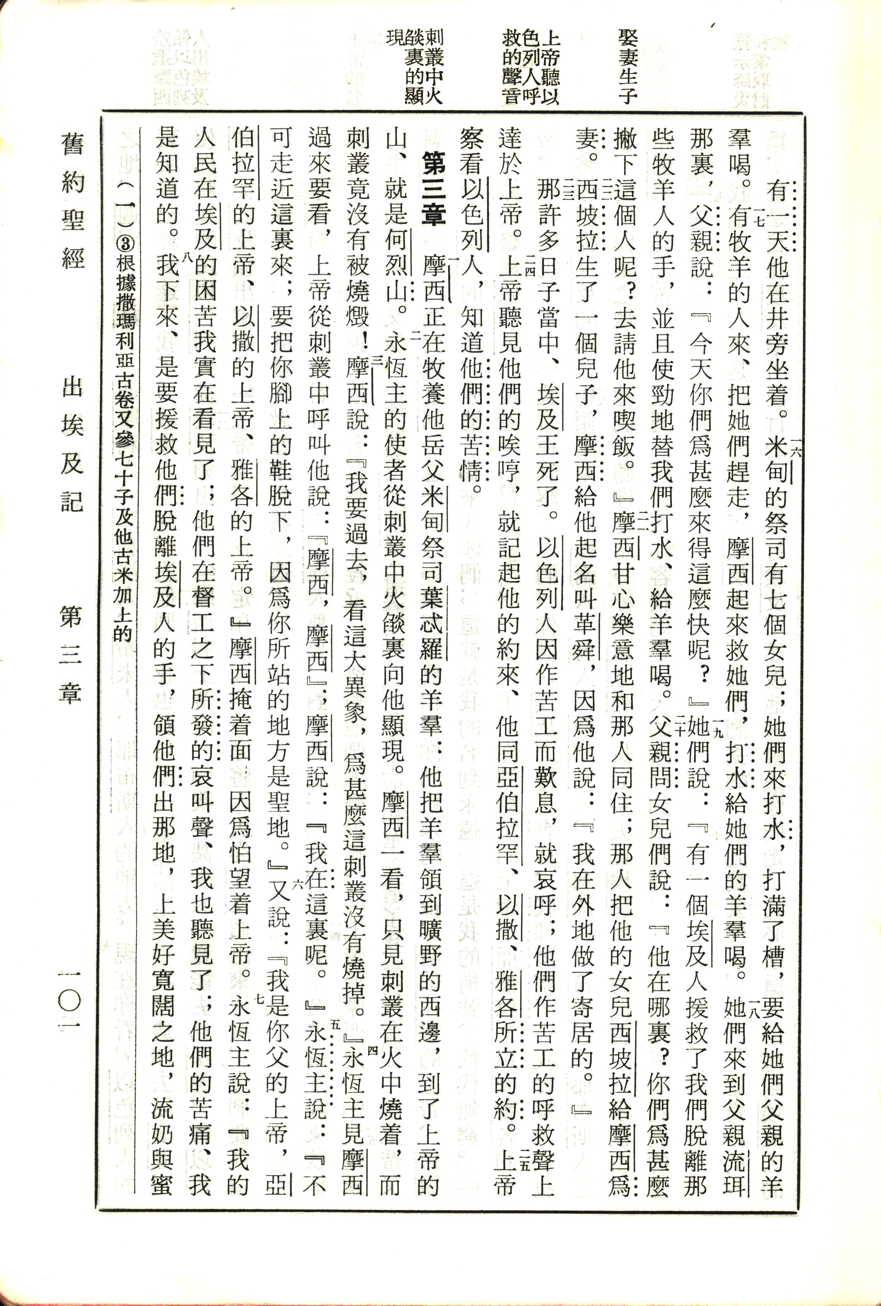 1970年新舊約全書(呂振中譯本) 出埃及記 2 章 16 節到 3 章 8 節