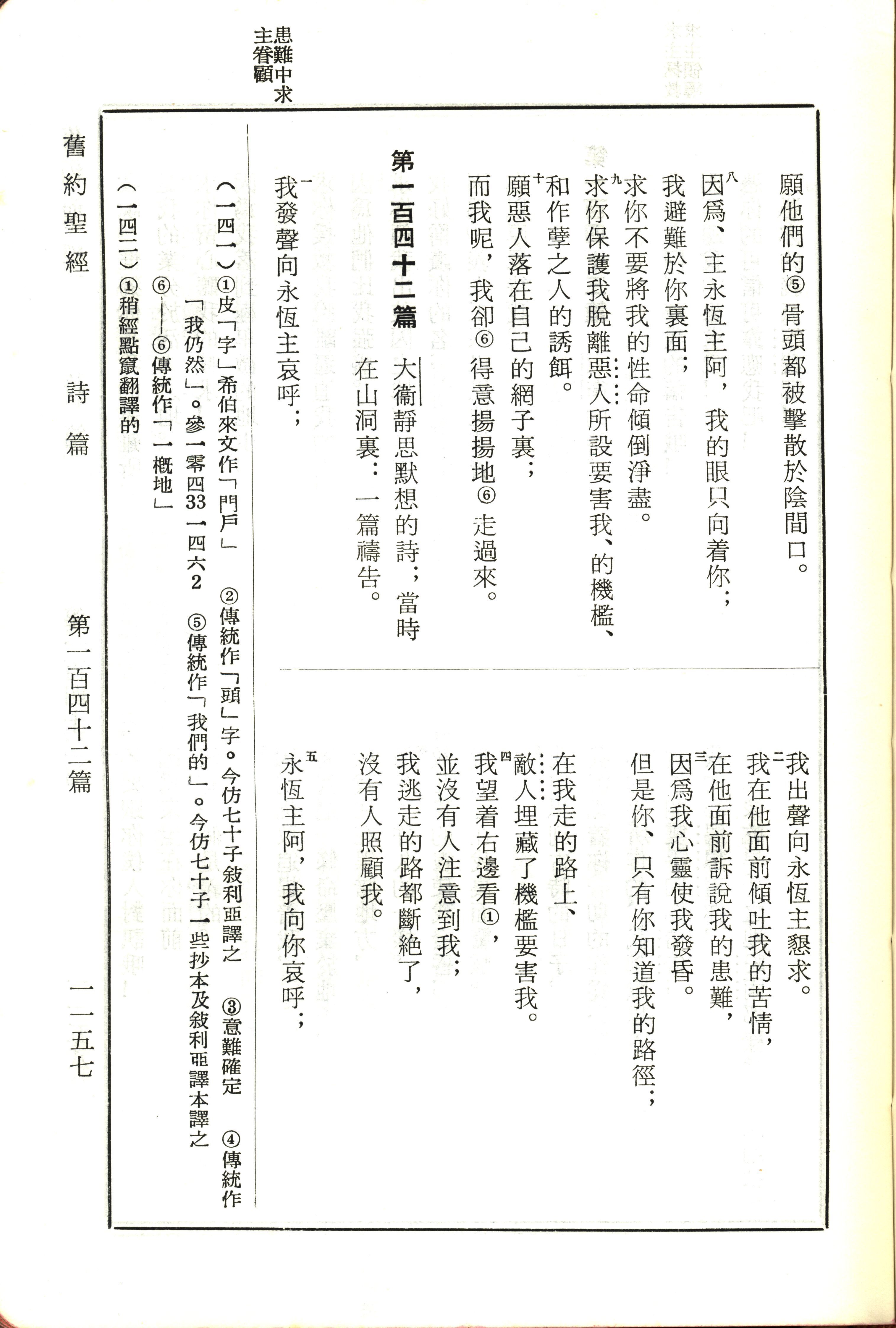 1970年新舊約全書(呂振中譯本) 詩篇 141 章 8 節到 142 章 5 節