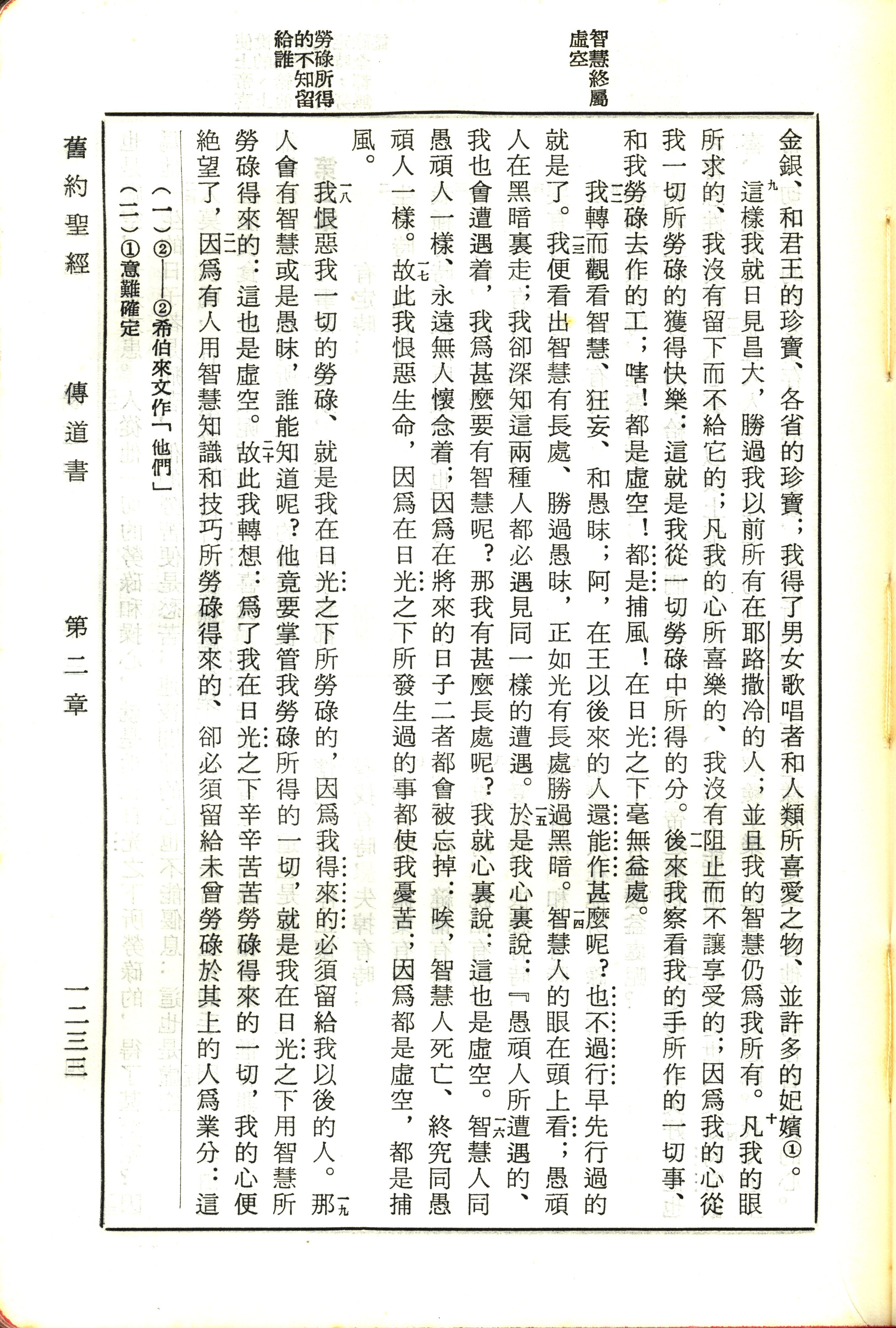 1970年新舊約全書(呂振中譯本) 傳道書 2 章 9 節到 2 章 21 節
