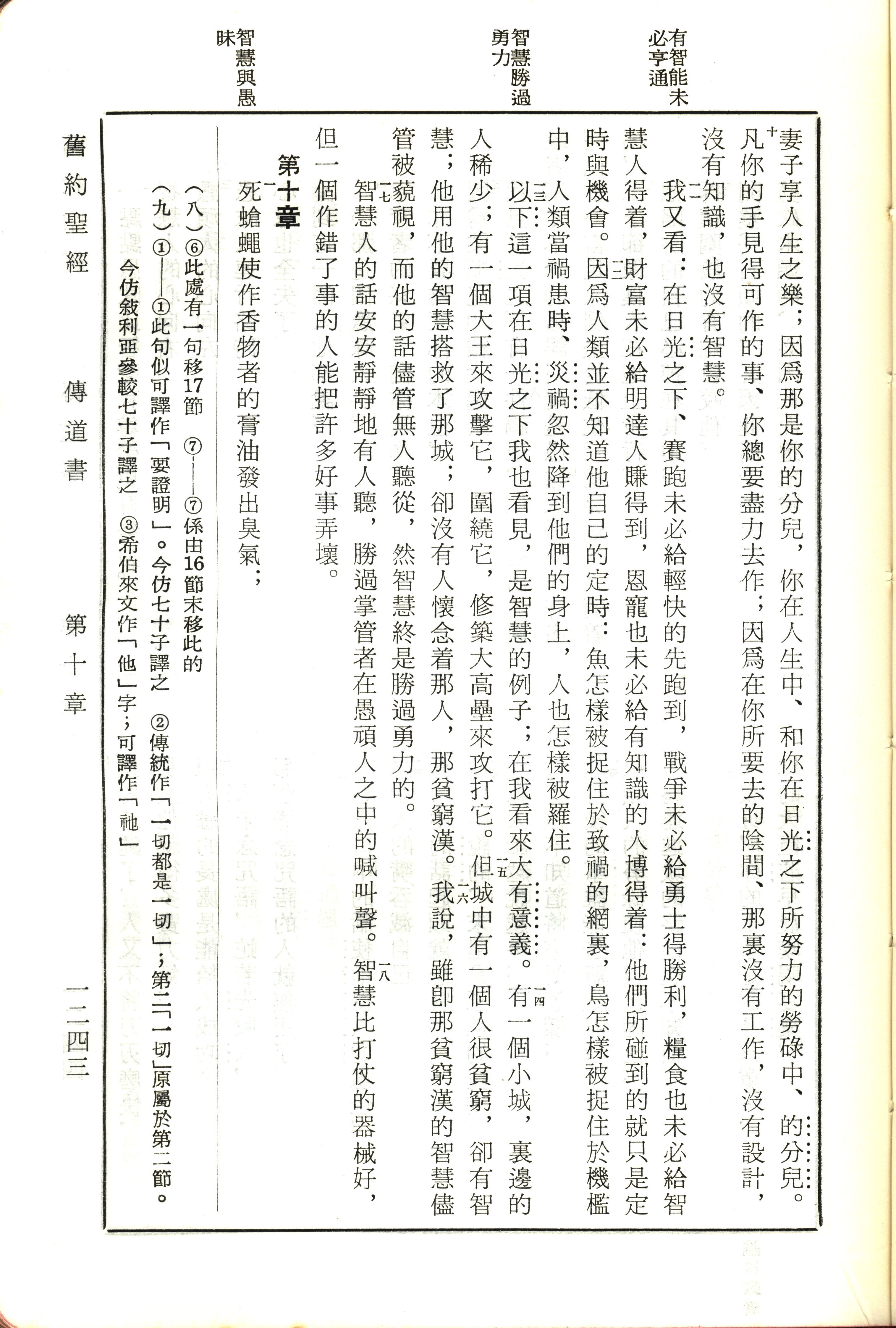 1970年新舊約全書(呂振中譯本) 傳道書 9 章 10 節到 10 章 1 節