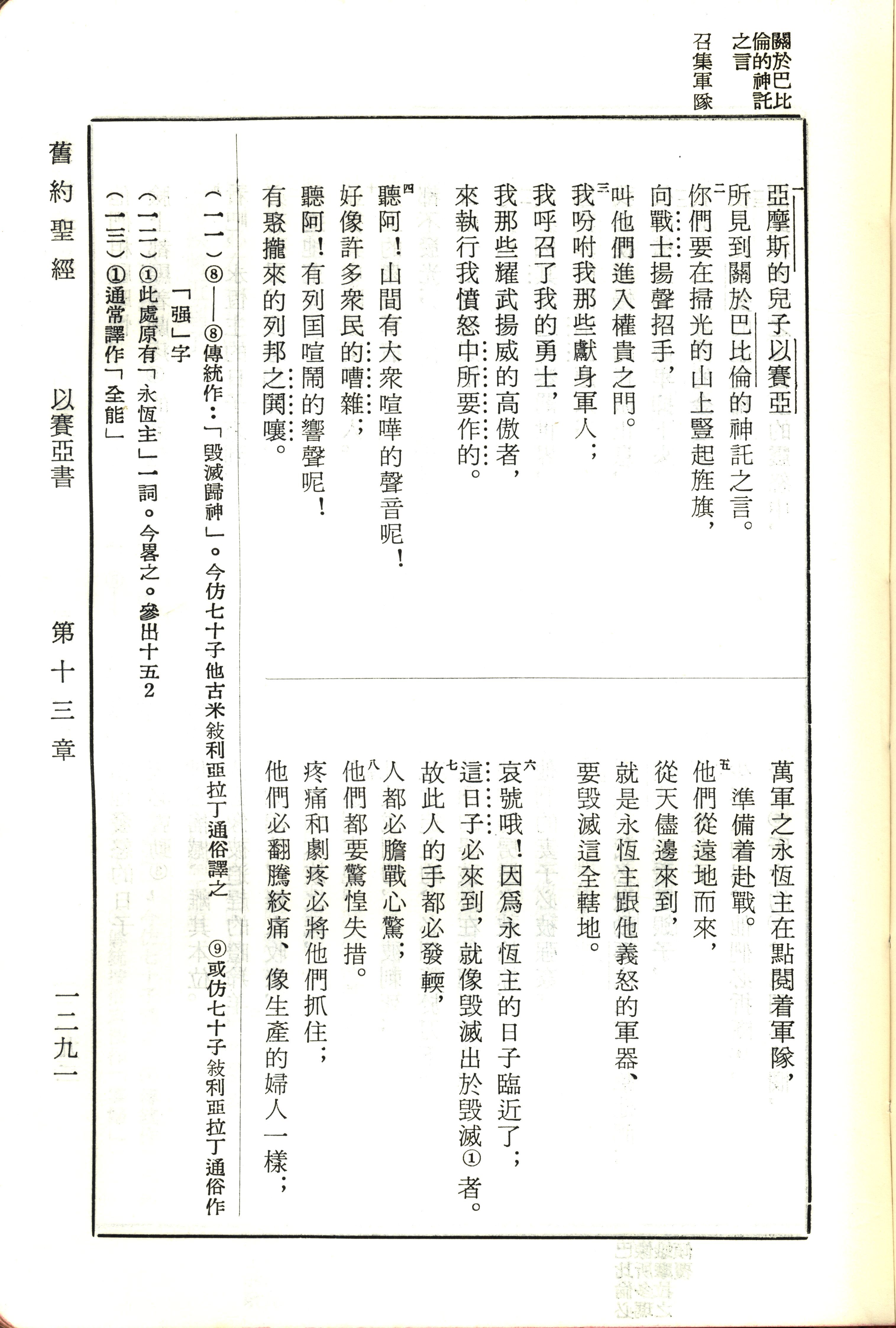 1970年新舊約全書(呂振中譯本) 以賽亞書 13 章 1 節到 13 章 8 節