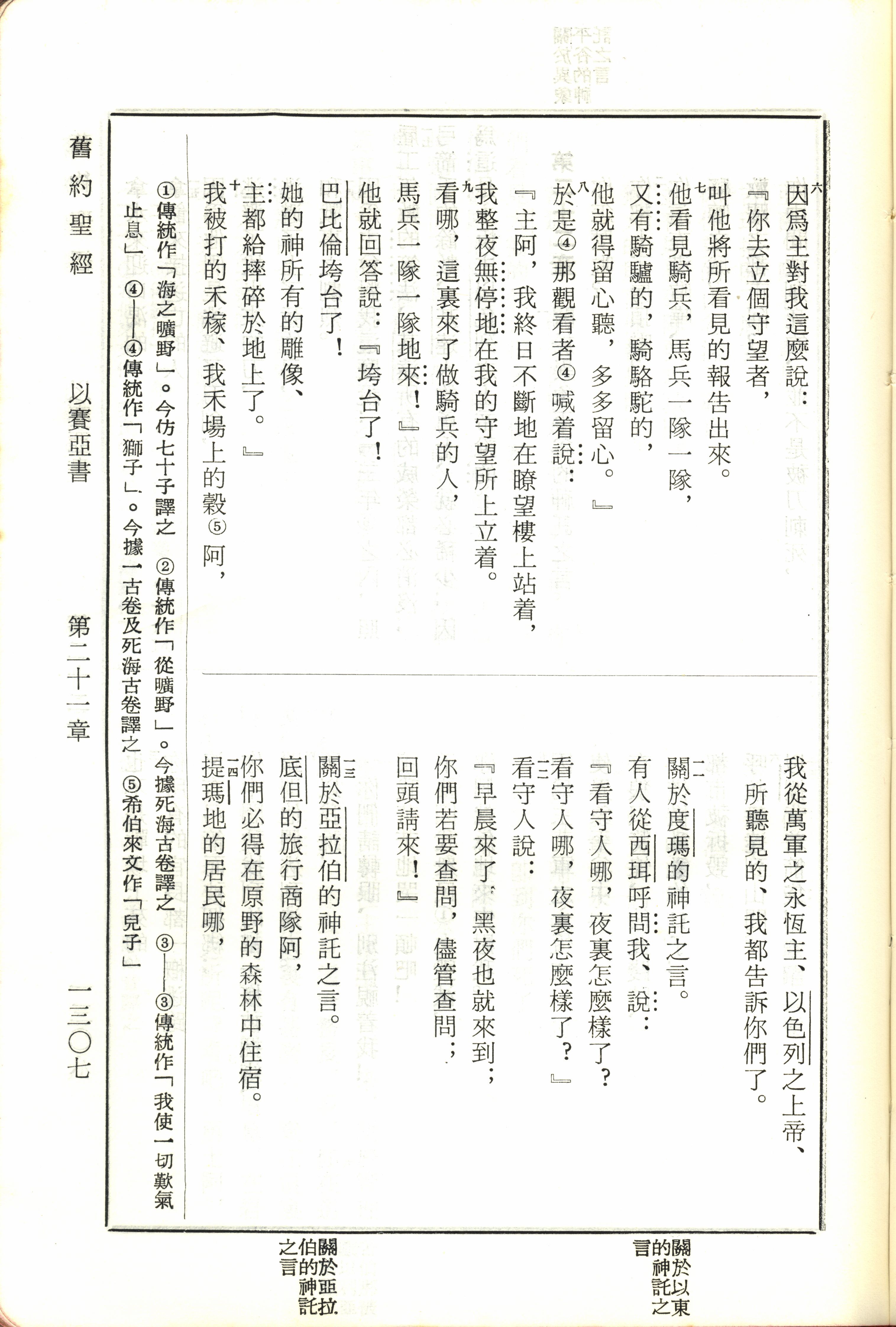 1970年新舊約全書(呂振中譯本) 以賽亞書 21 章 6 節到 21 章 14 節