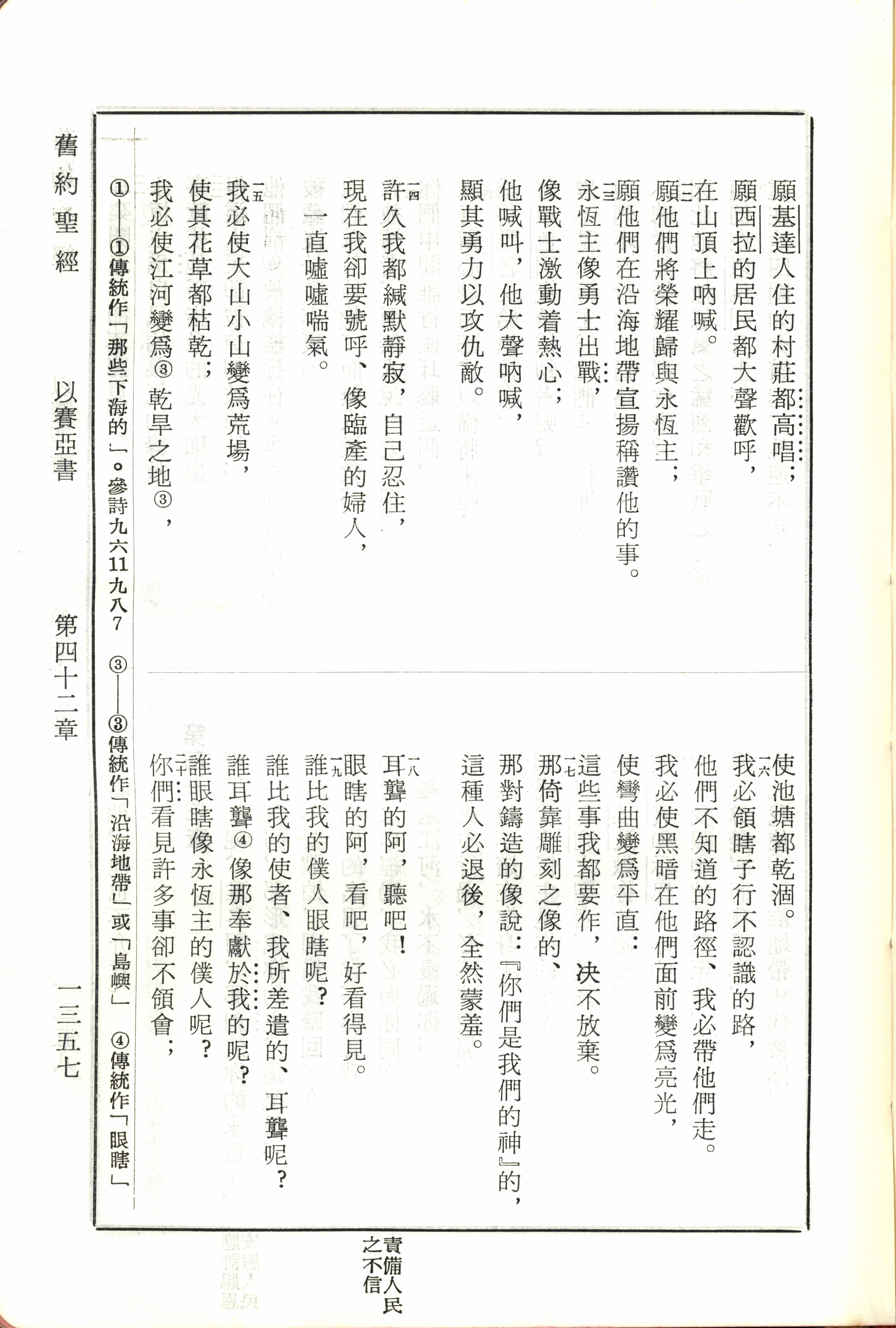 1970年新舊約全書(呂振中譯本) 以賽亞書 42 章 12 節到 42 章 20 節