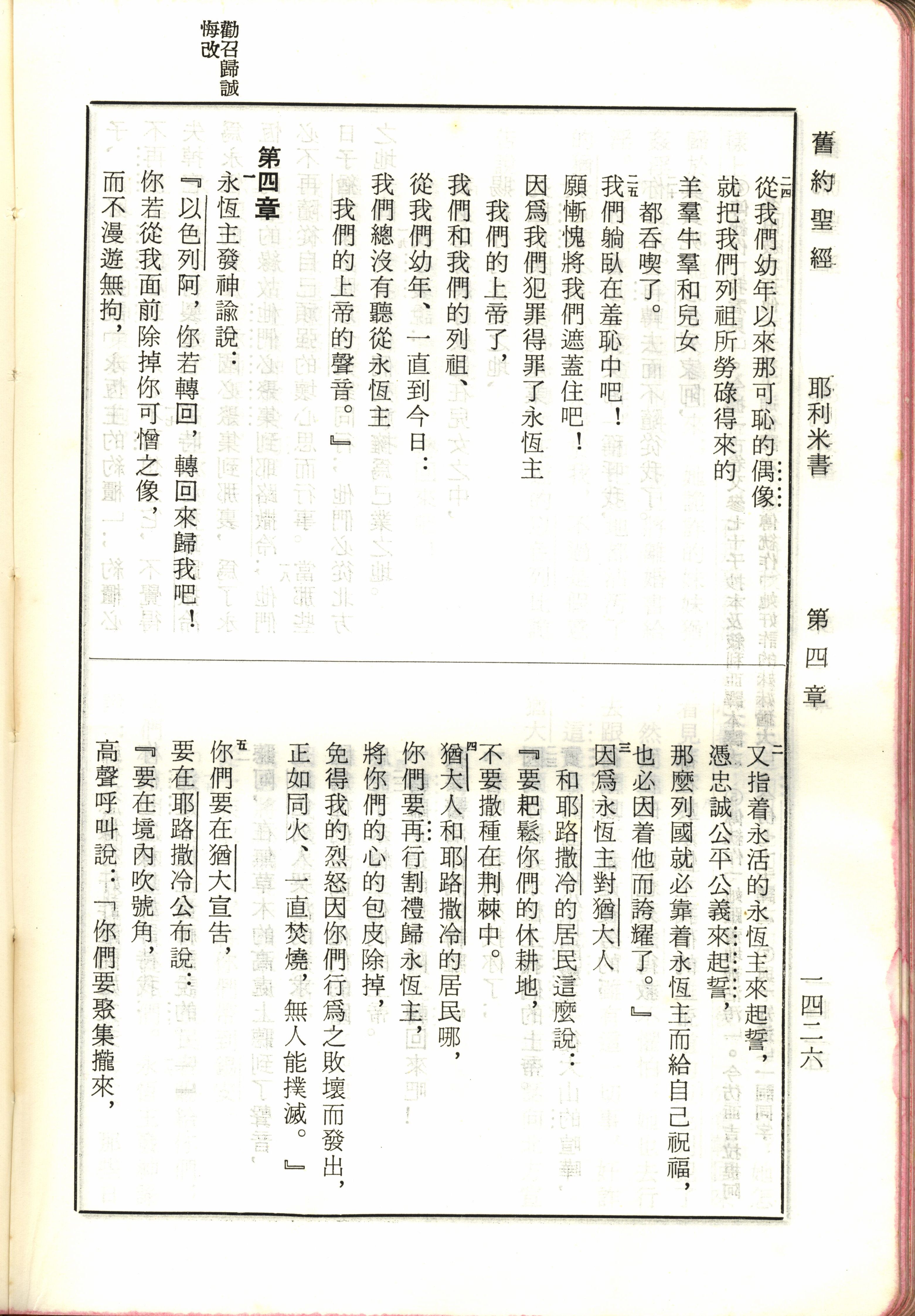 1970年新舊約全書(呂振中譯本) 耶利米書 3 章 24 節到 4 章 5 節