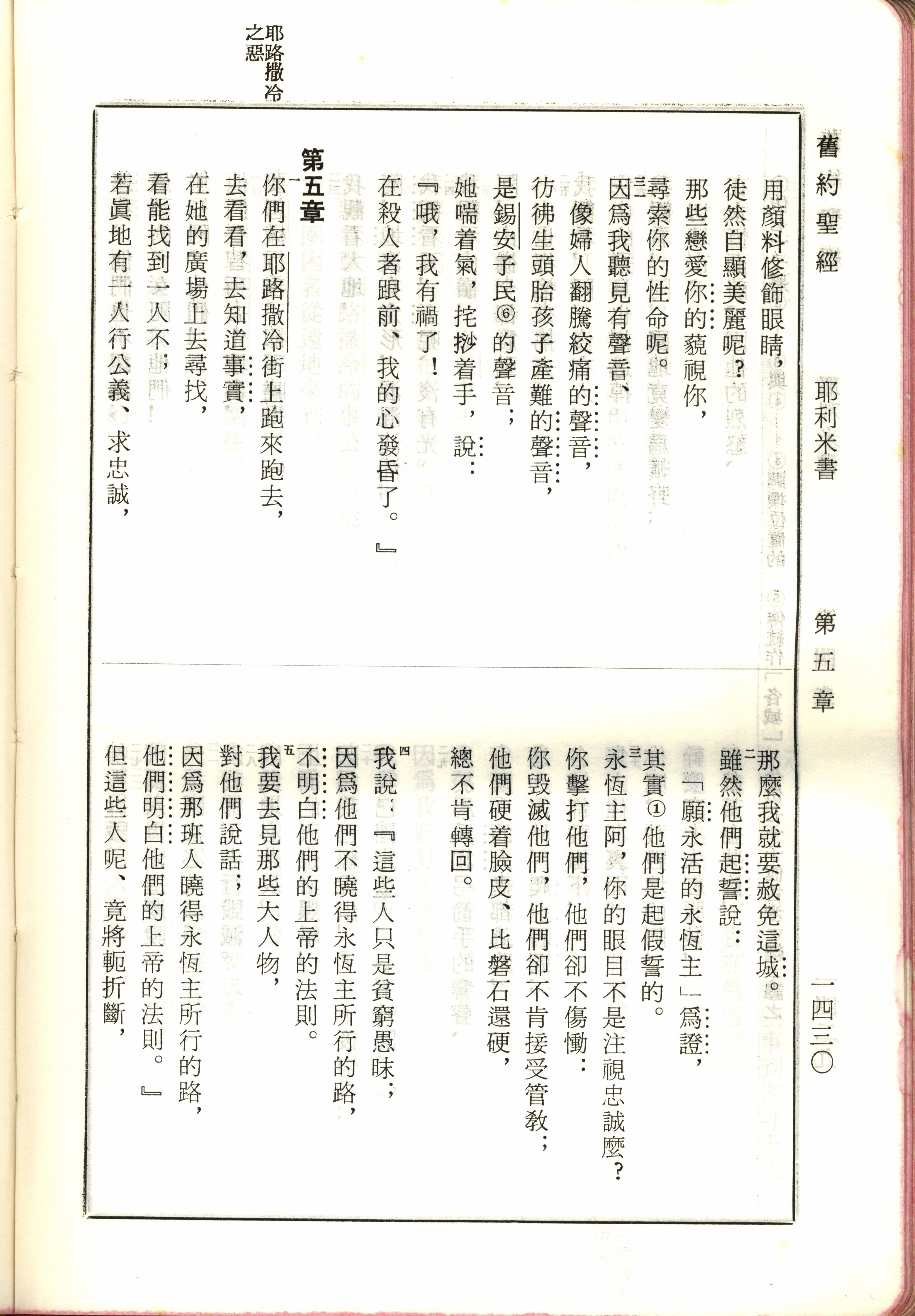 1970年新舊約全書(呂振中譯本) 耶利米書 4 章 31 節到 5 章 5 節