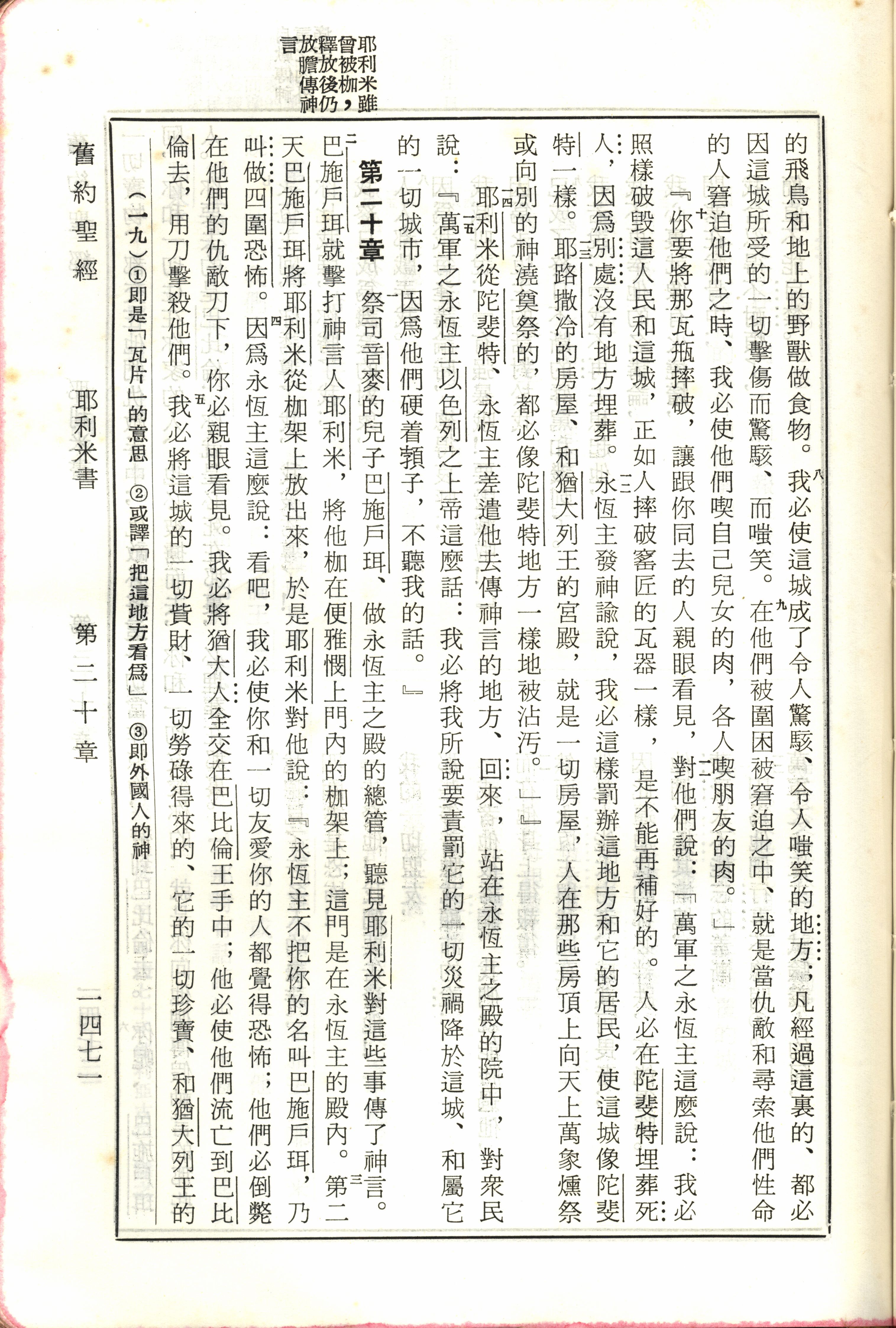 1970年新舊約全書(呂振中譯本) 耶利米書 19 章 8 節到 20 章 5 節