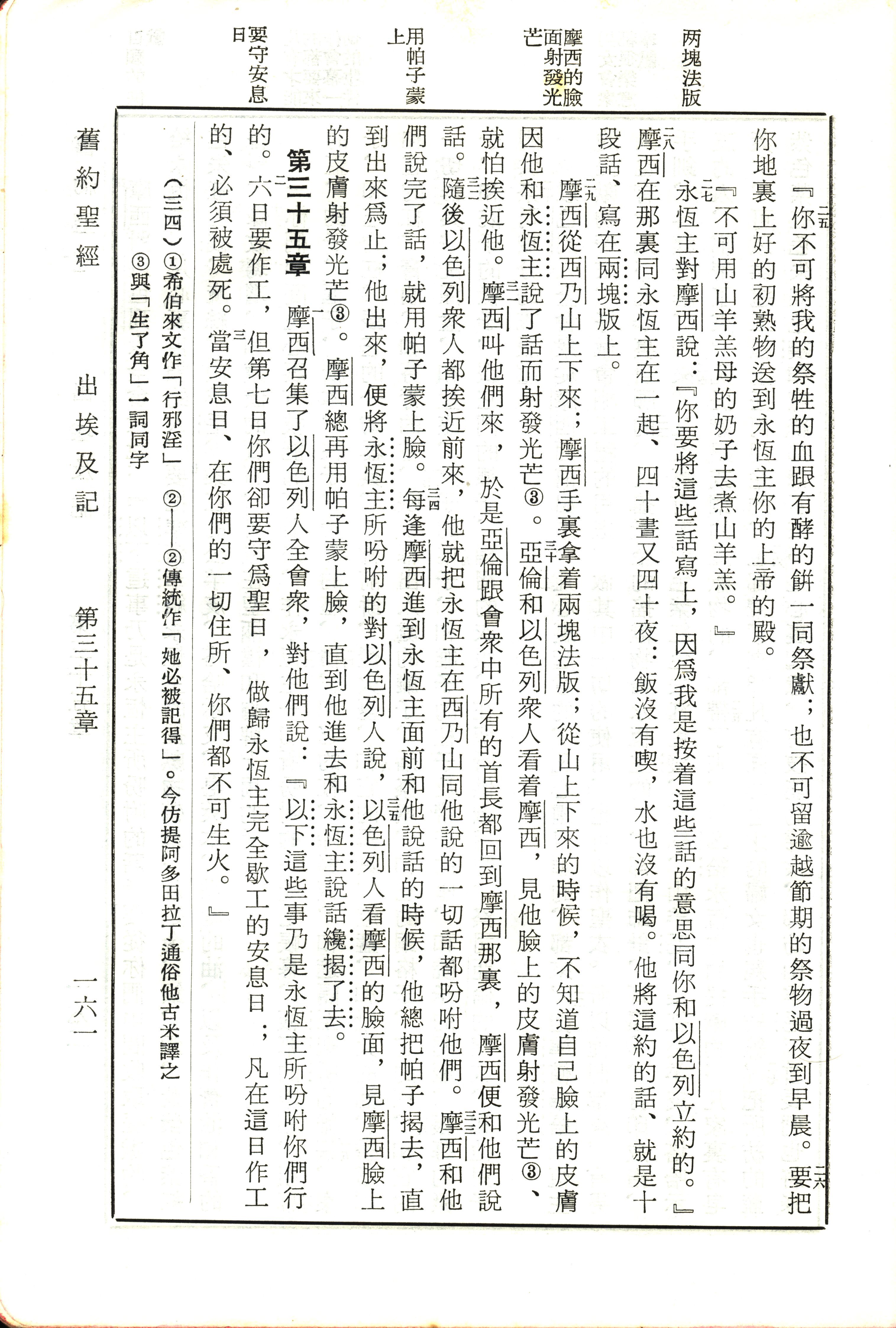 1970年新舊約全書(呂振中譯本) 出埃及記 34 章 25 節到 35 章 3 節