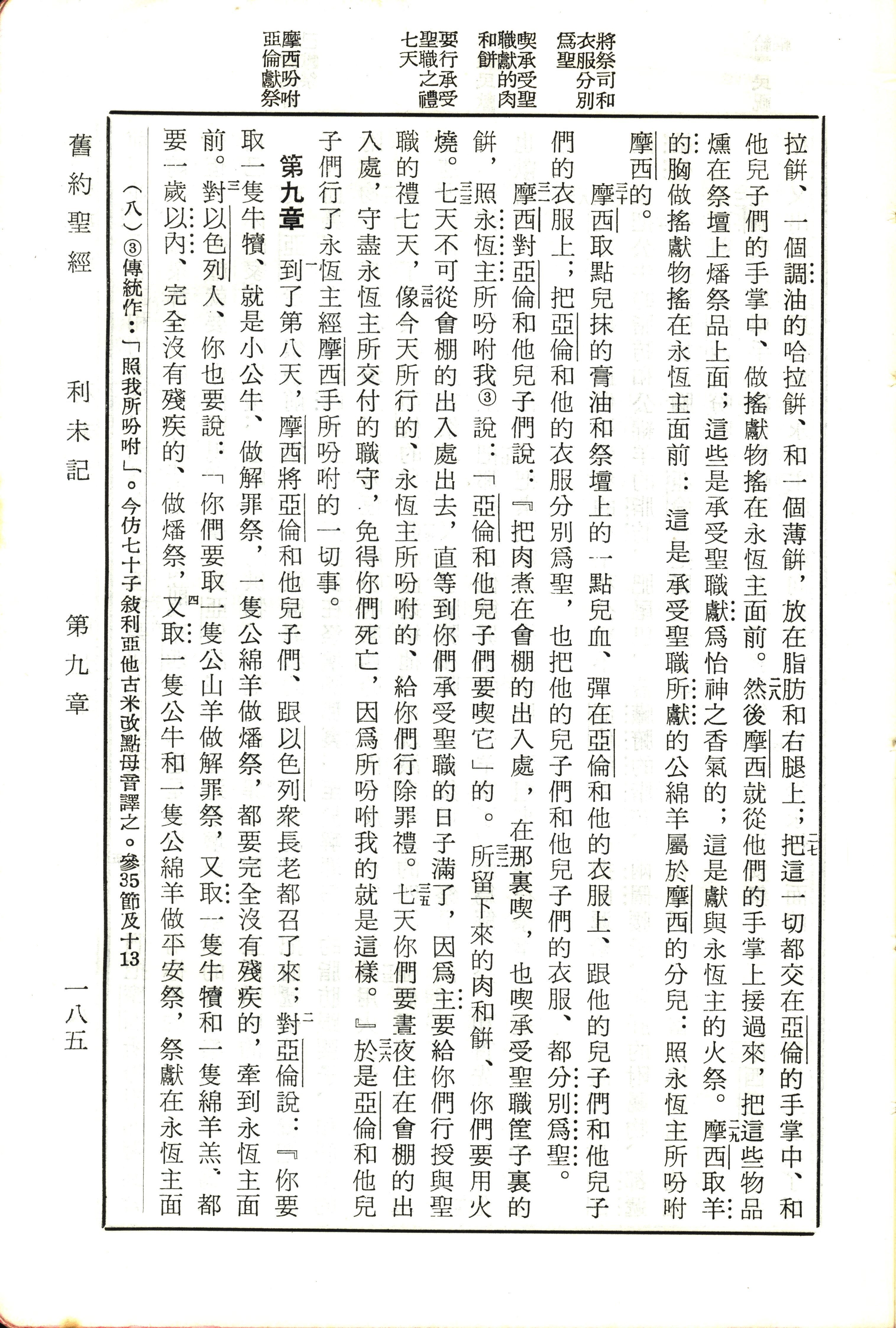 1970年新舊約全書(呂振中譯本) 利未記 8 章 27 節到 9 章 4 節