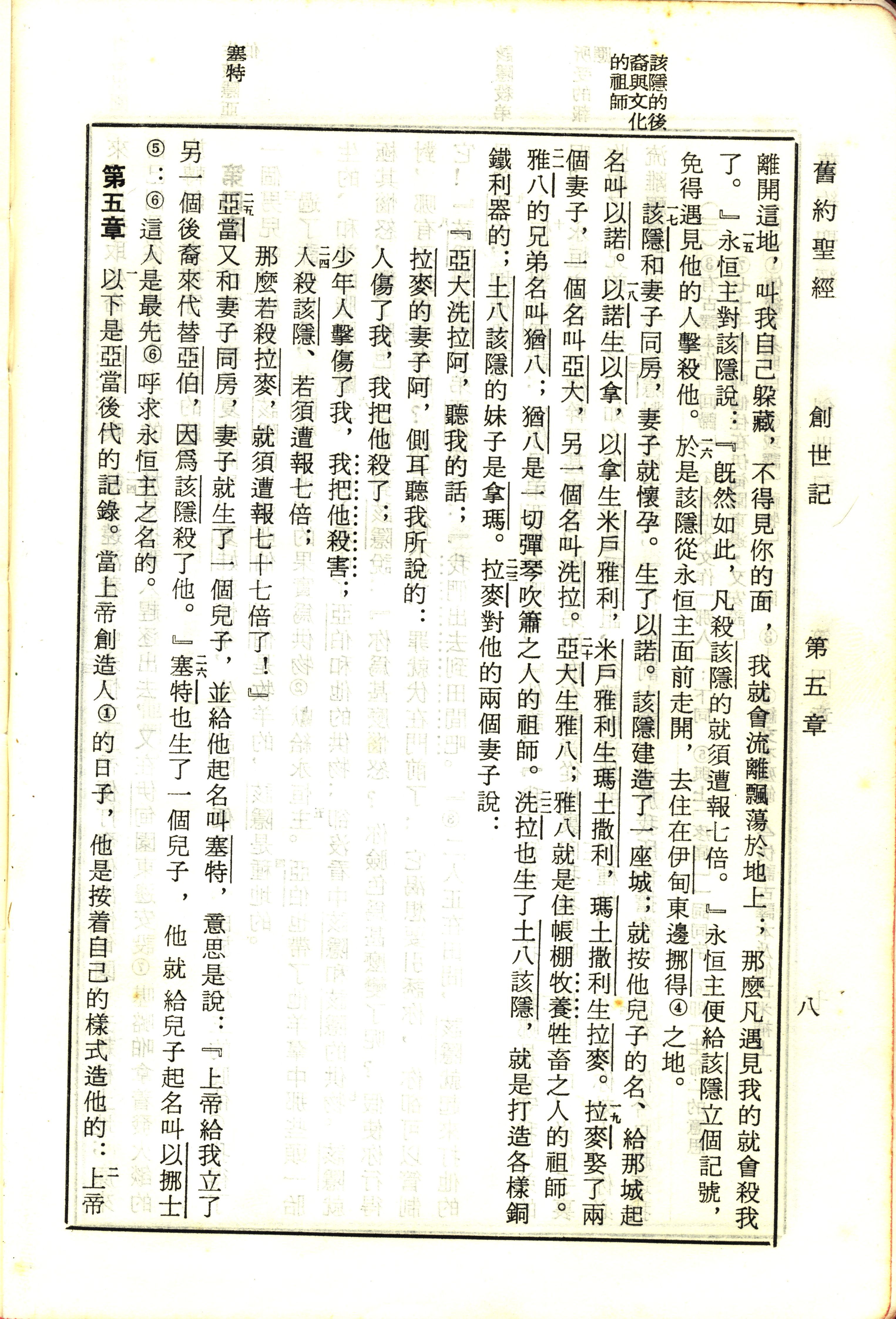 1970年新舊約全書(呂振中譯本) 創世記 4 章 15 節到 5 章 2 節