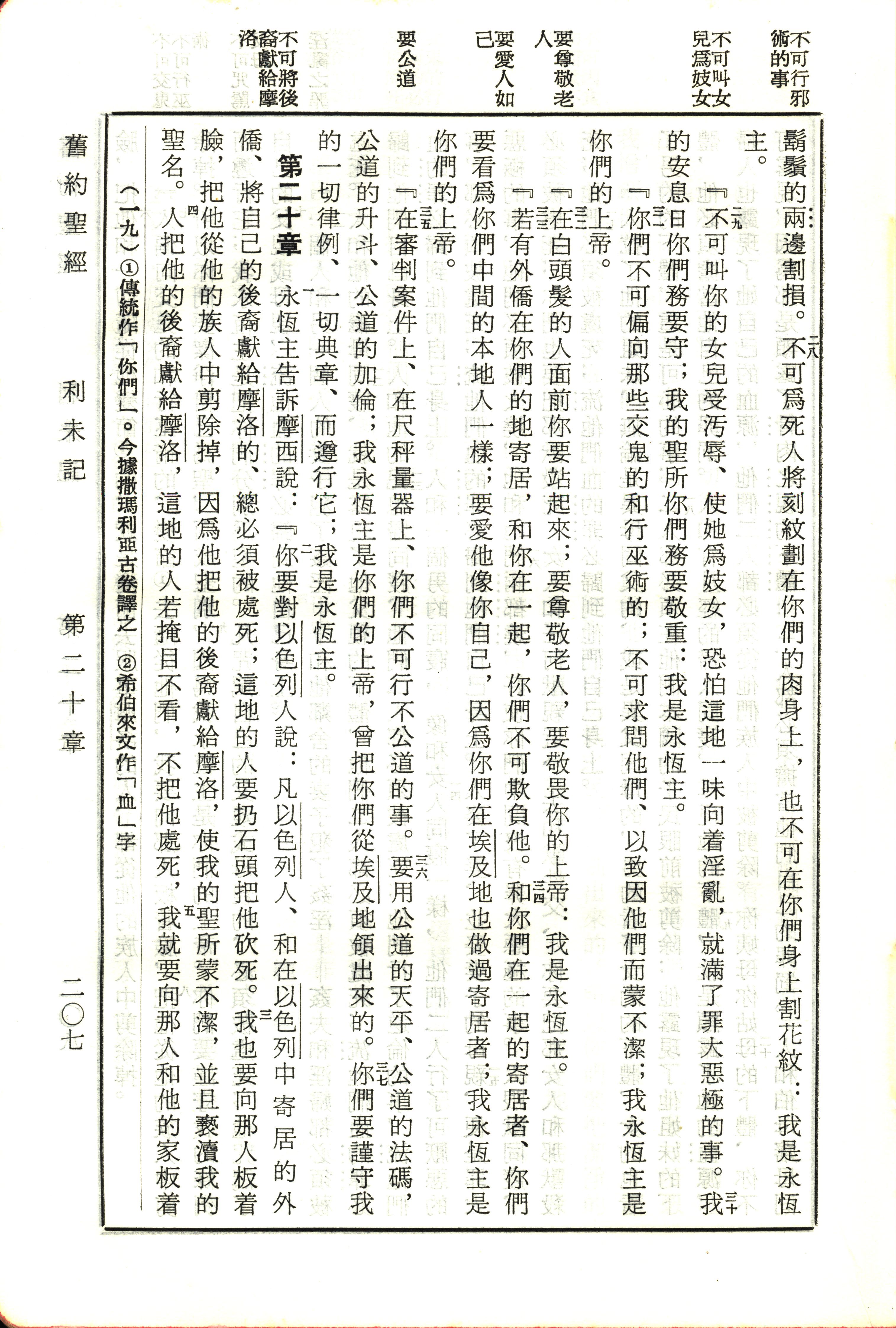 1970年新舊約全書(呂振中譯本) 利未記 19 章 28 節到 20 章 5 節