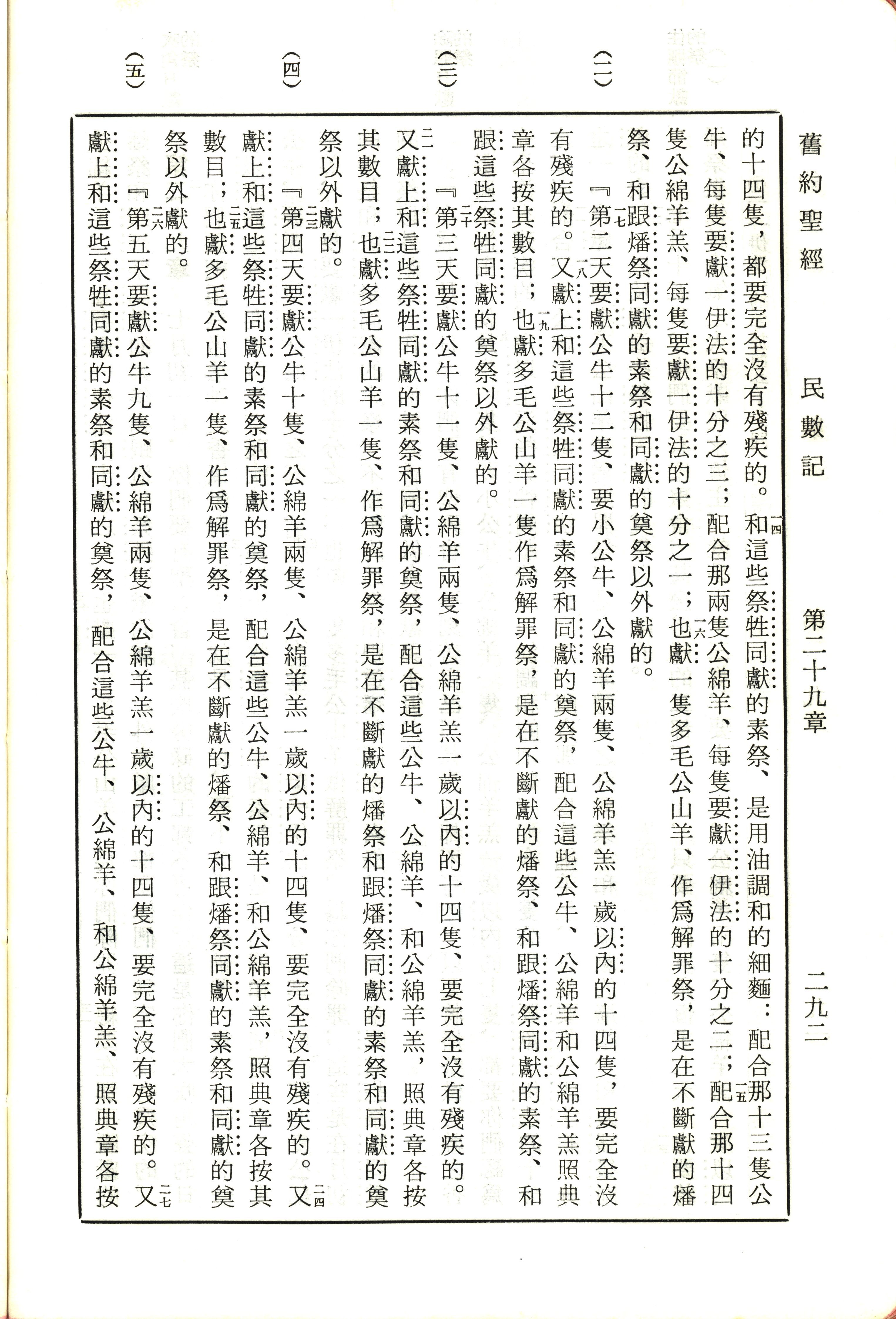 1970年新舊約全書(呂振中譯本) 民數記 29 章 14 節到 29 章 27 節