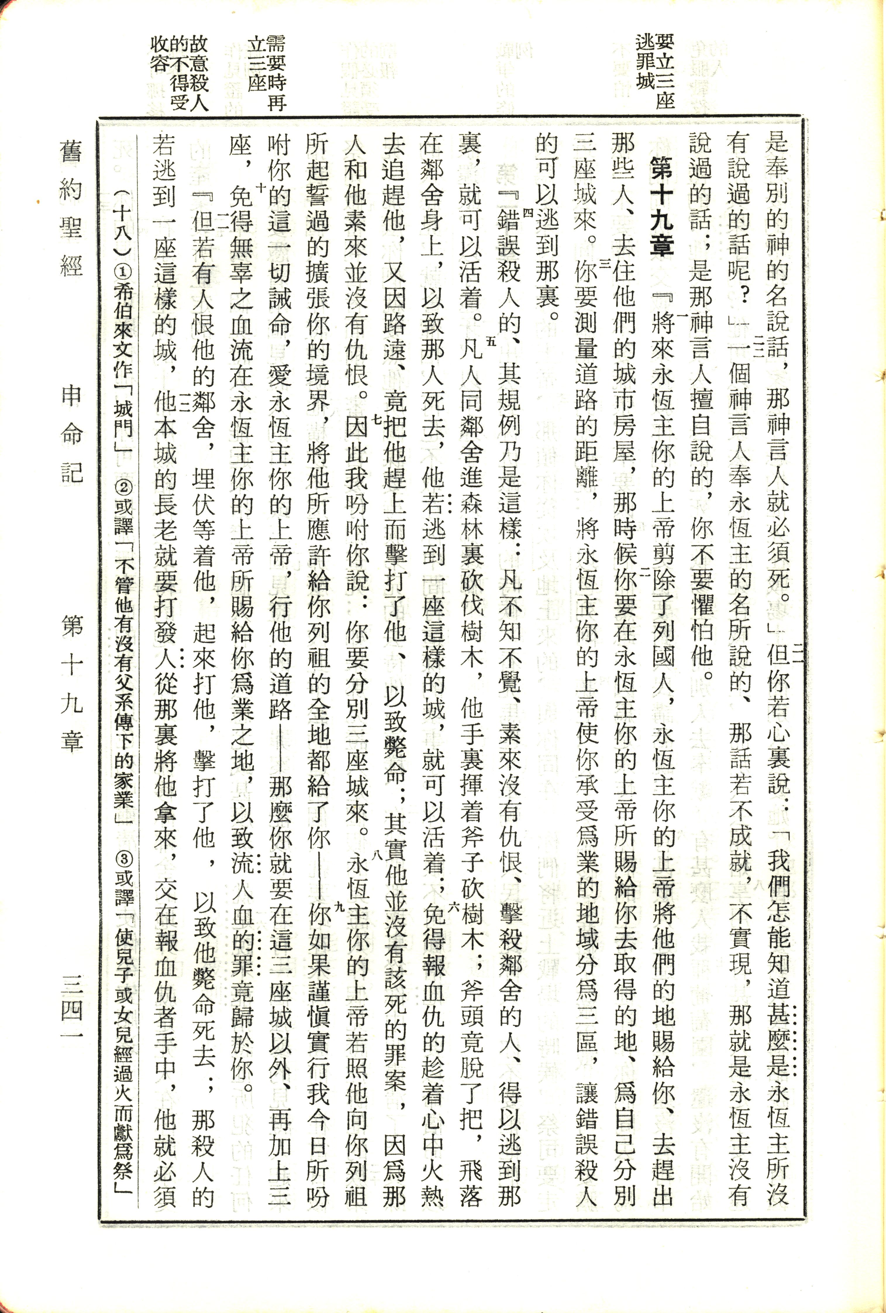 1970年新舊約全書(呂振中譯本) 申命記 18 章 21 節到 19 章 12 節