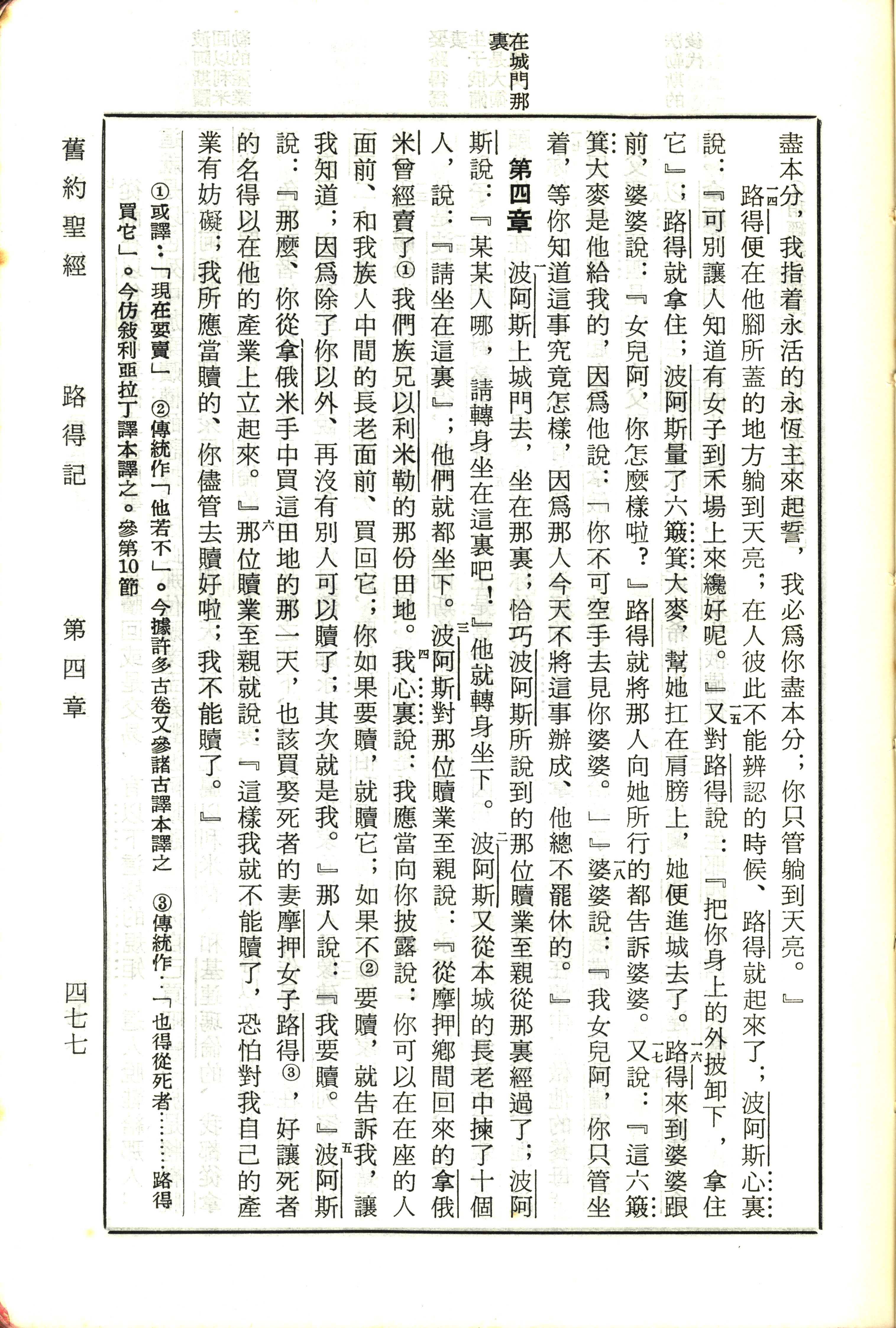 1970年新舊約全書(呂振中譯本) 路得記 3 章 14 節到 4 章 6 節