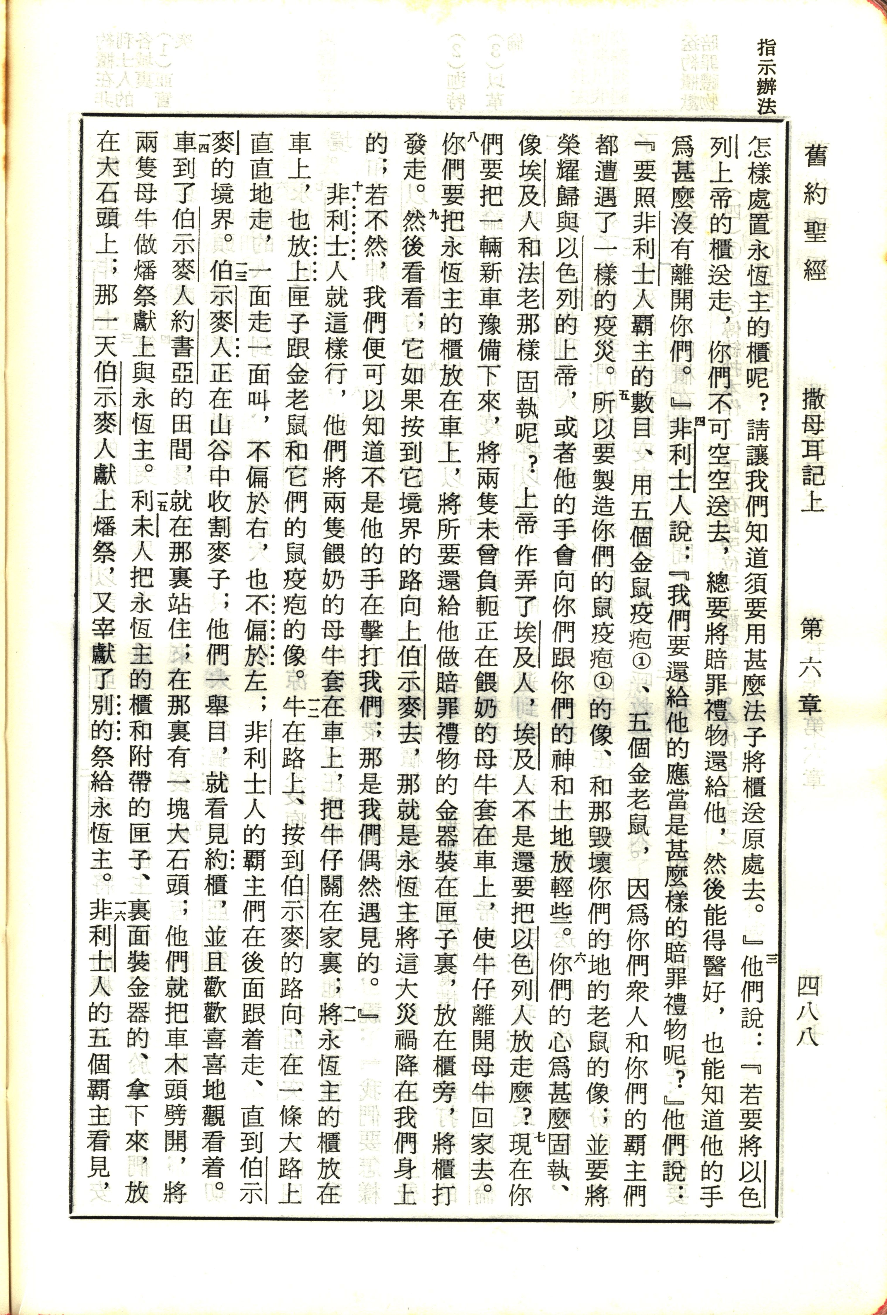 1970年新舊約全書(呂振中譯本) 撒母耳記上 6 章 3 節到 6 章 16 節