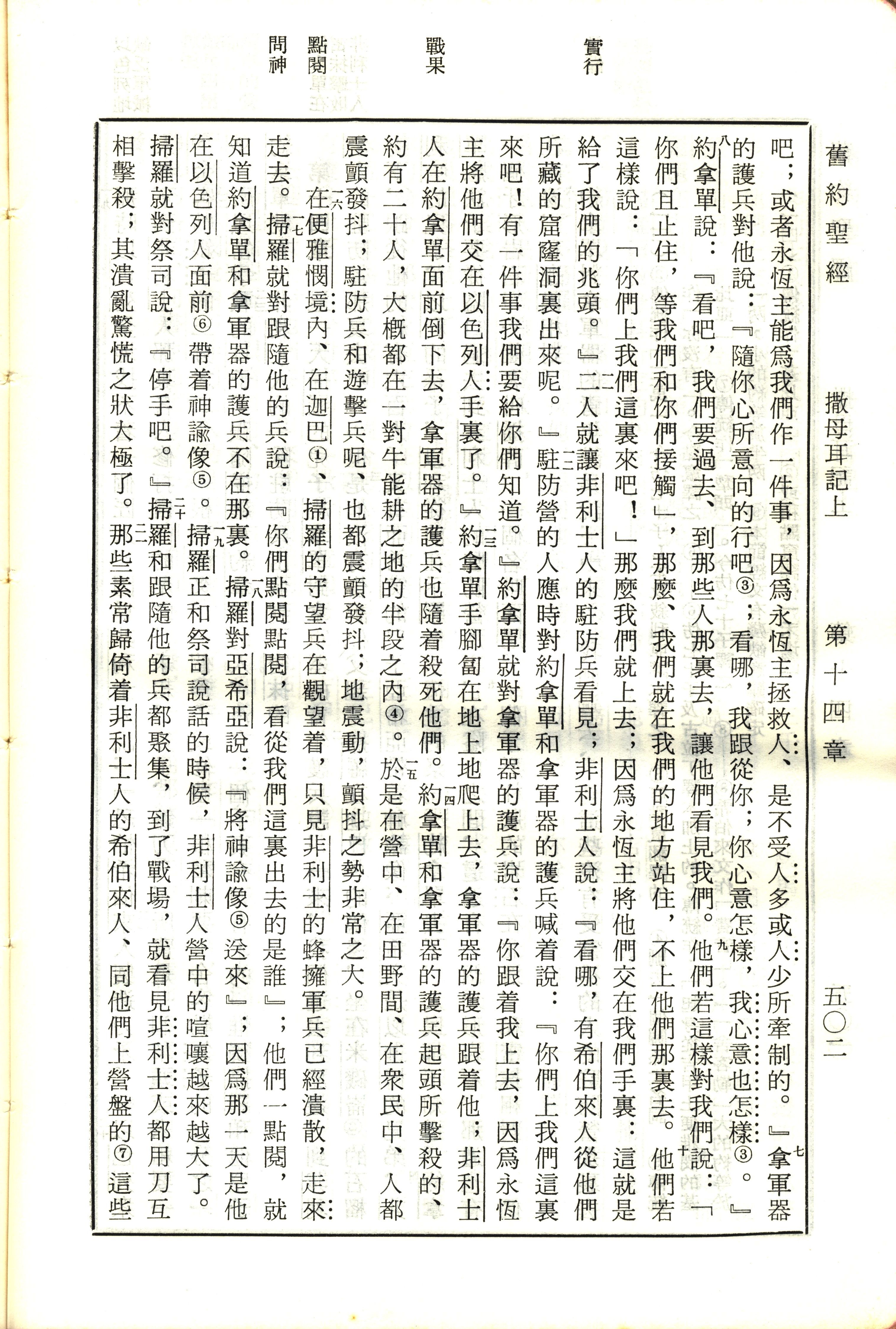 1970年新舊約全書(呂振中譯本) 撒母耳記上 14 章 7 節到 14 章 21 節