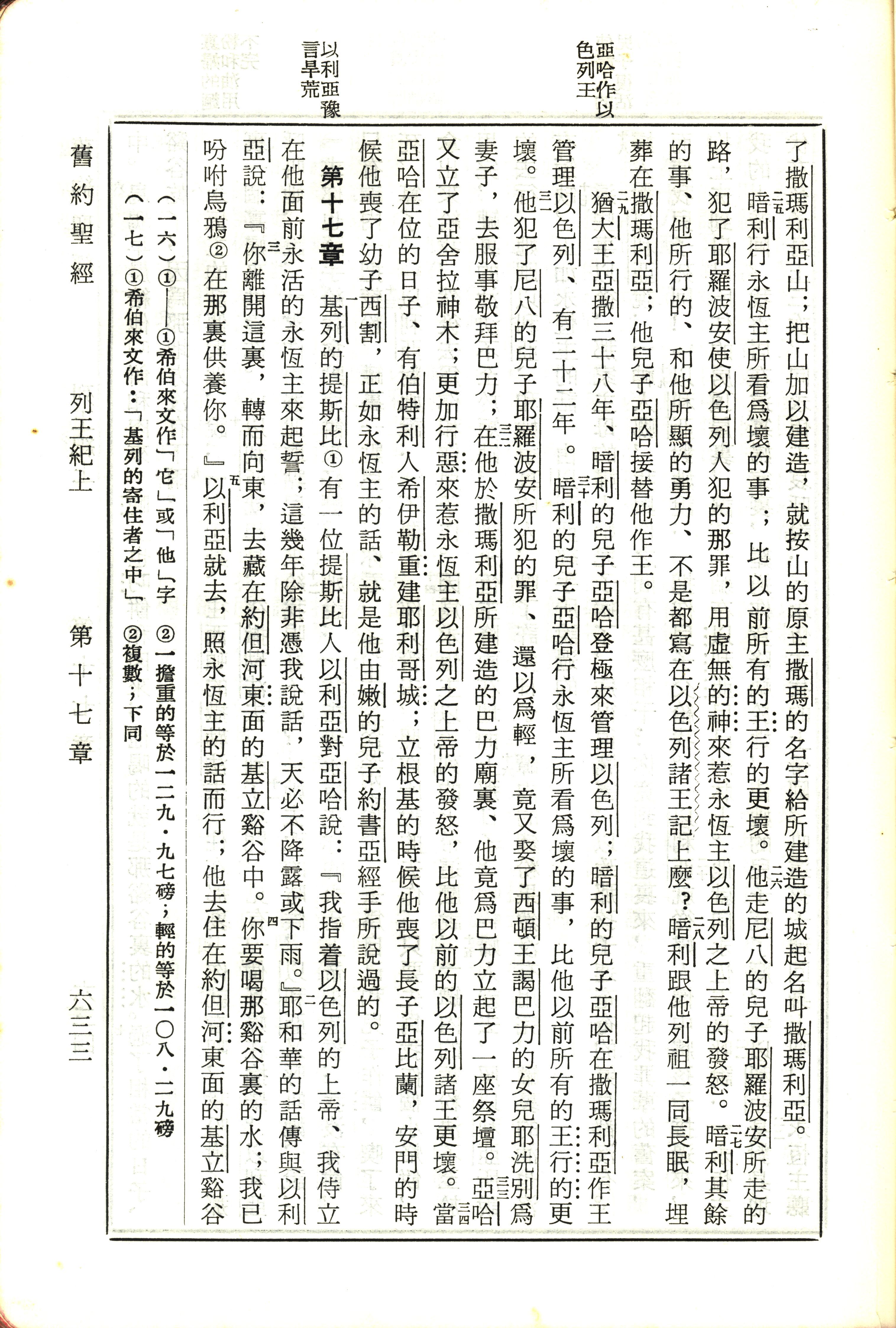 1970年新舊約全書(呂振中譯本) 列王紀上 16 章 25 節到 17 章 5 節