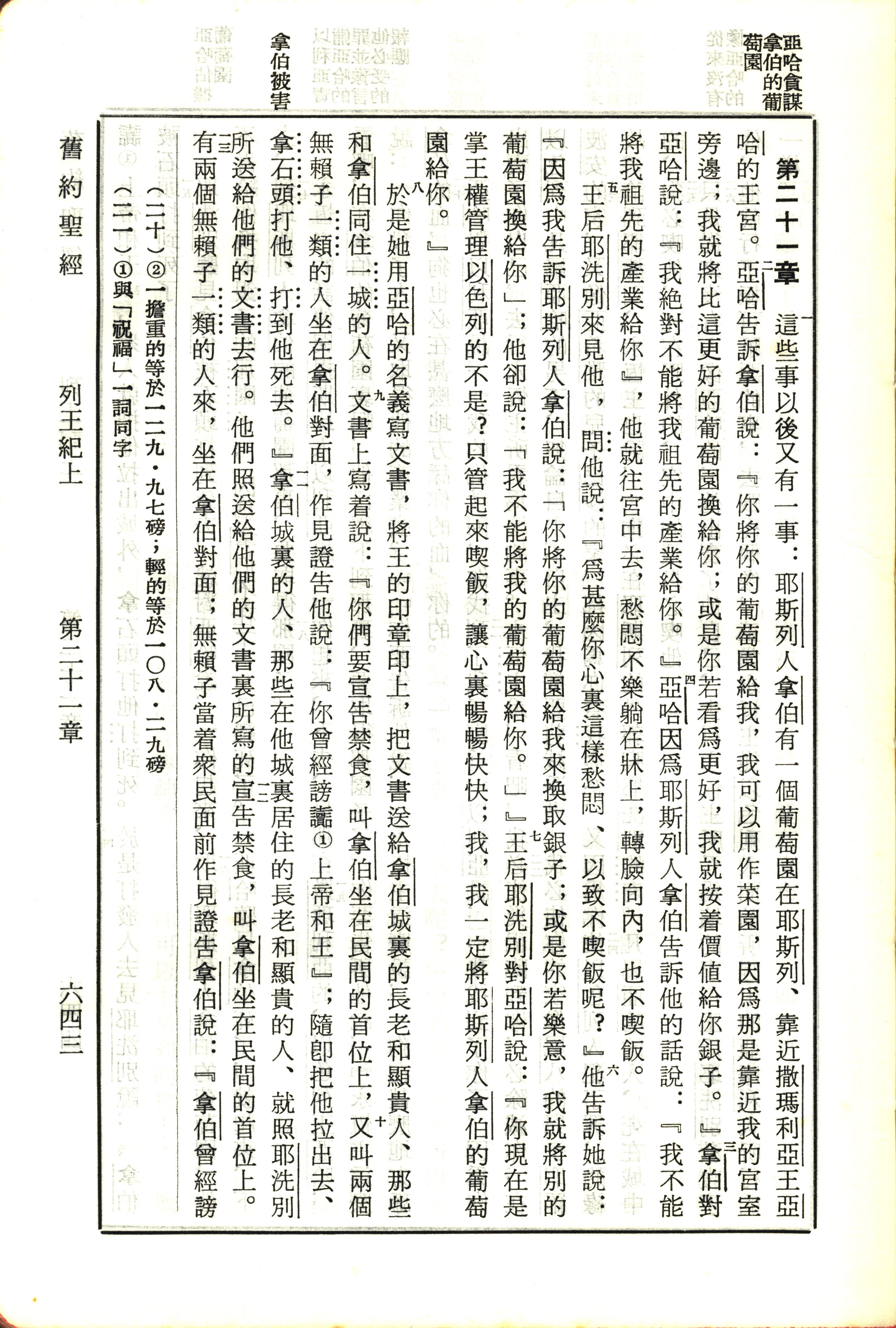 1970年新舊約全書(呂振中譯本) 列王紀上 21 章 1 節到 21 章 13 節