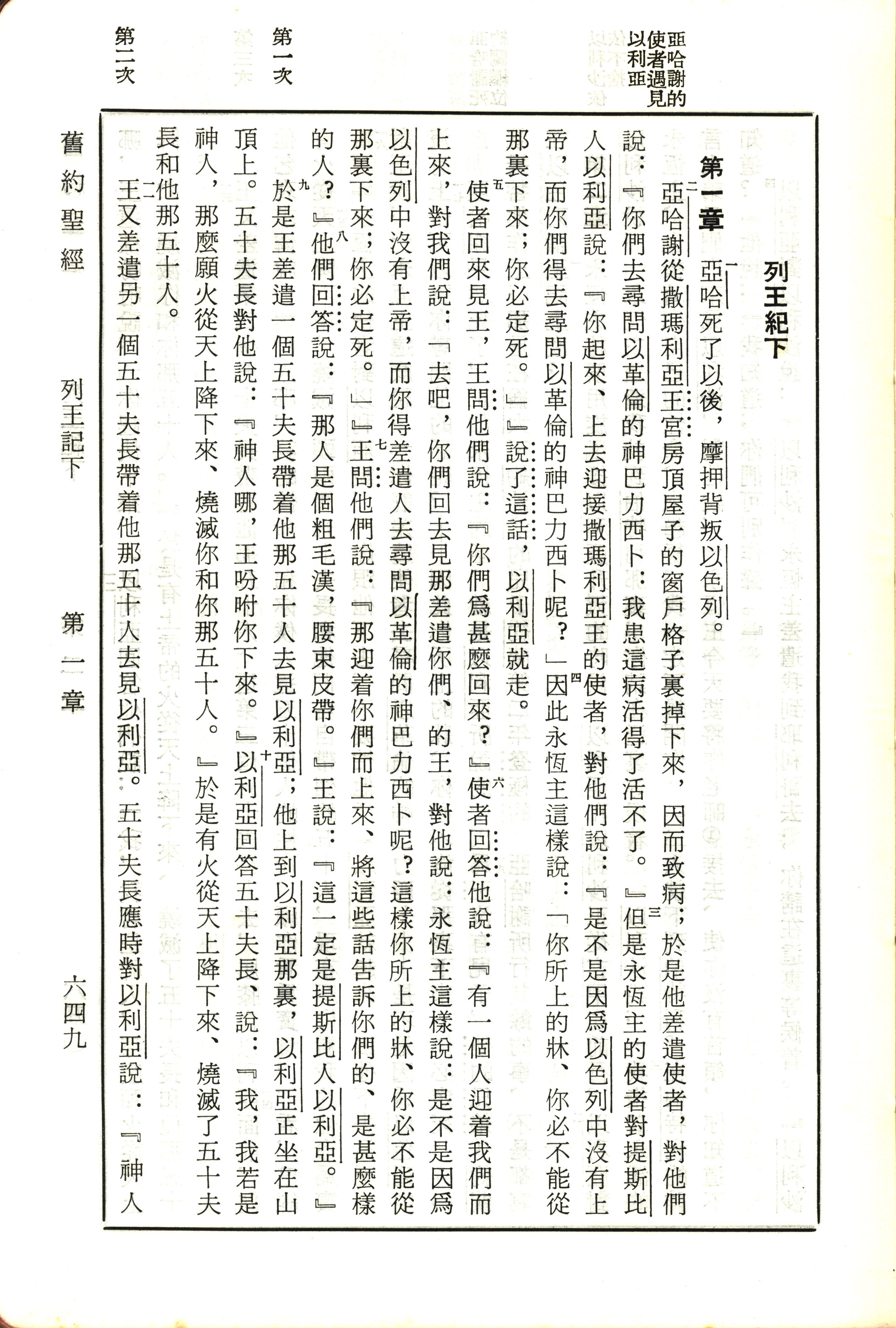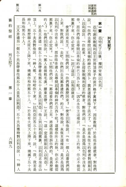 1970年新舊約全書(呂振中譯本) 列王紀下 1 章 1 節到 1 章 11 節