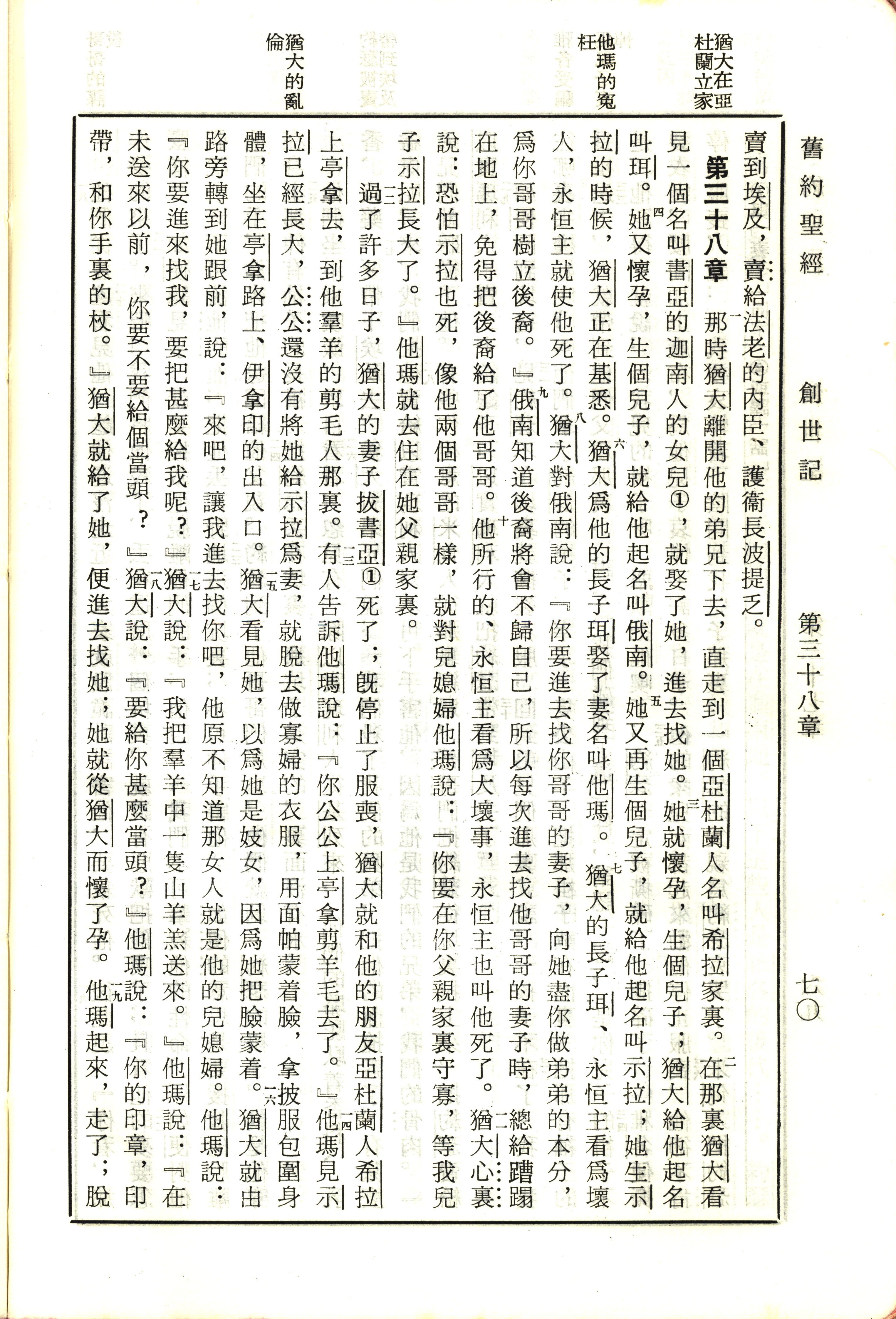 1970年新舊約全書(呂振中譯本) 創世記 38 章 1 節到 38 章 19 節