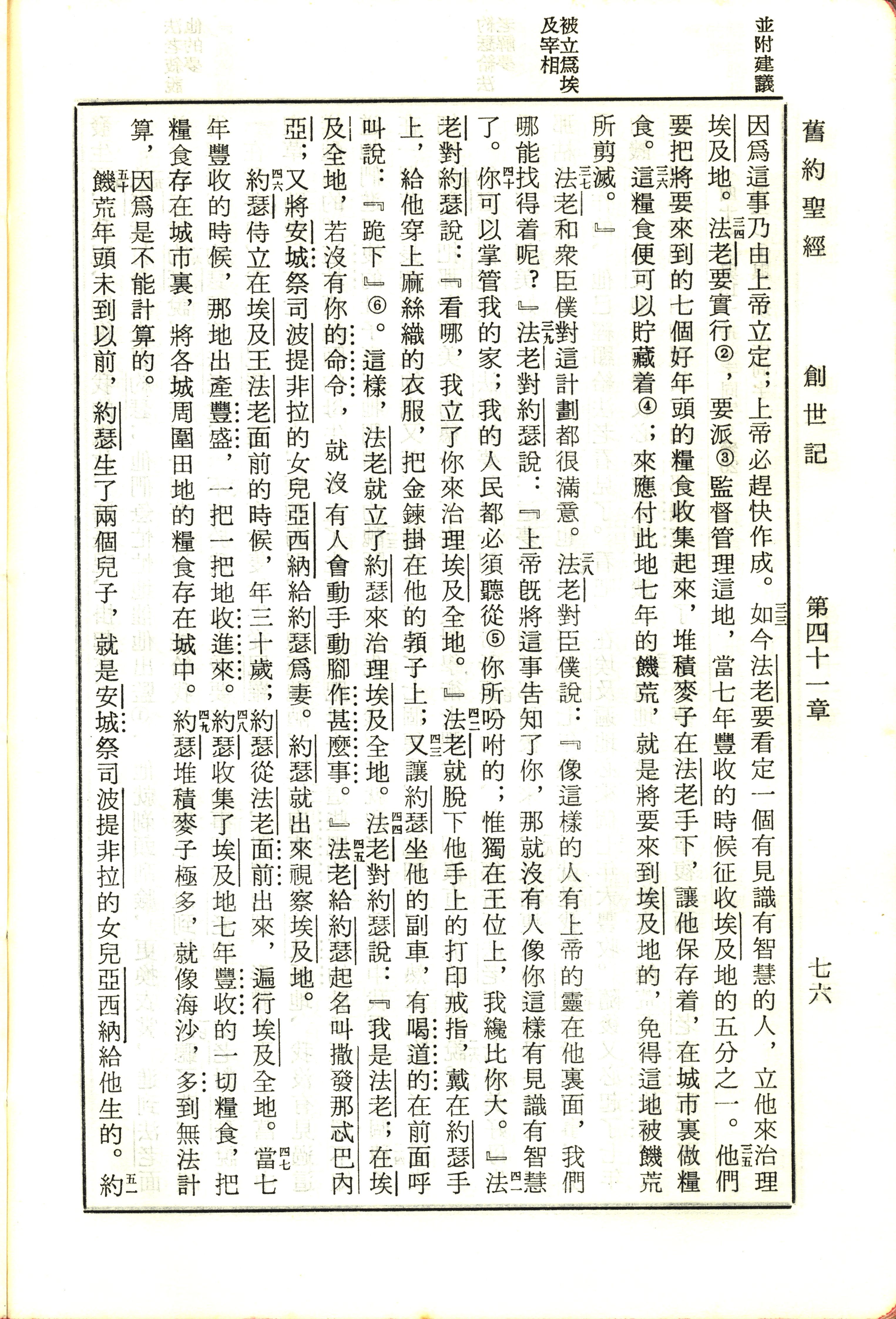 1970年新舊約全書(呂振中譯本) 創世記 41 章 33 節到 41 章 51 節