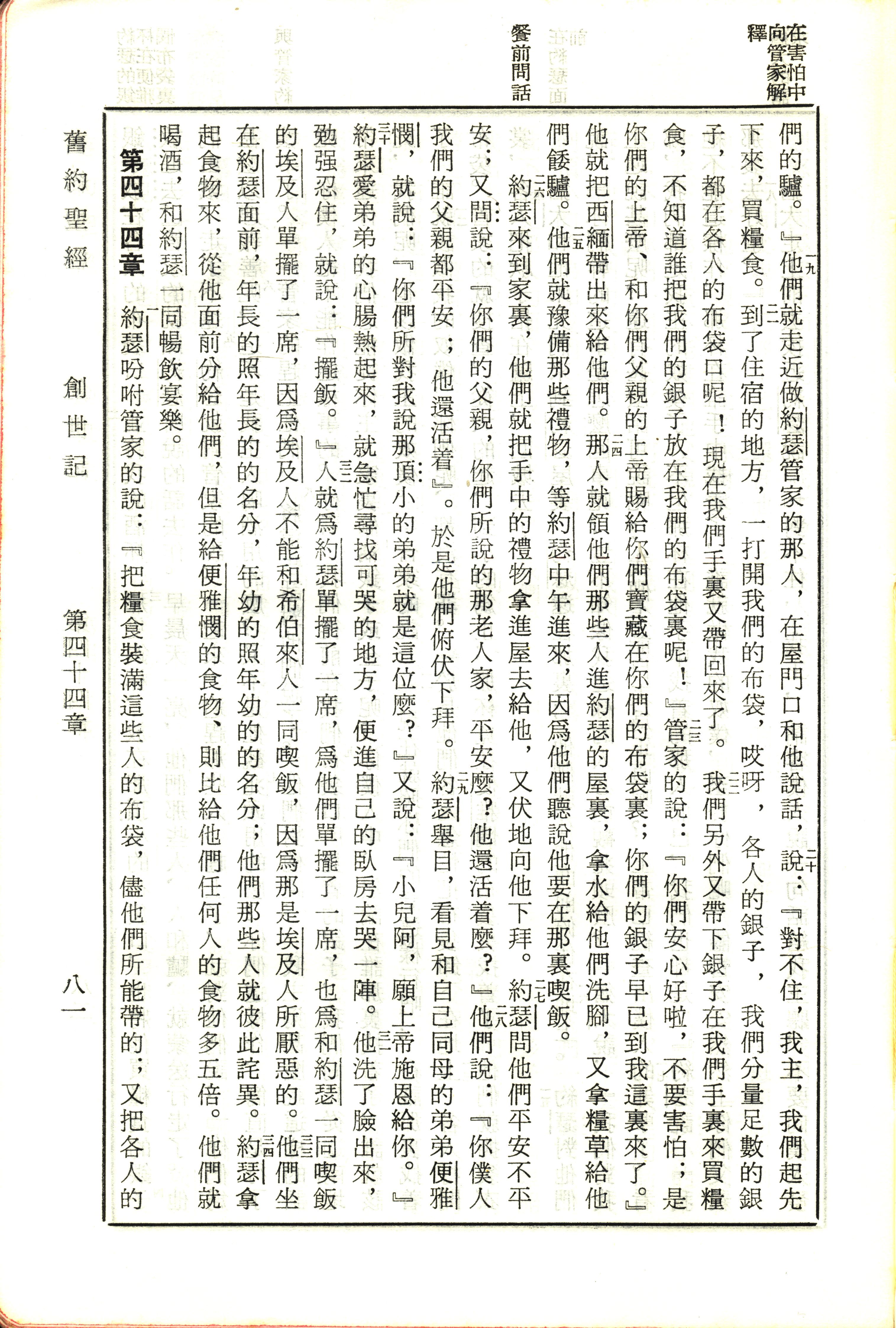 1970年新舊約全書(呂振中譯本) 創世記 43 章 19 節到 44 章 1 節