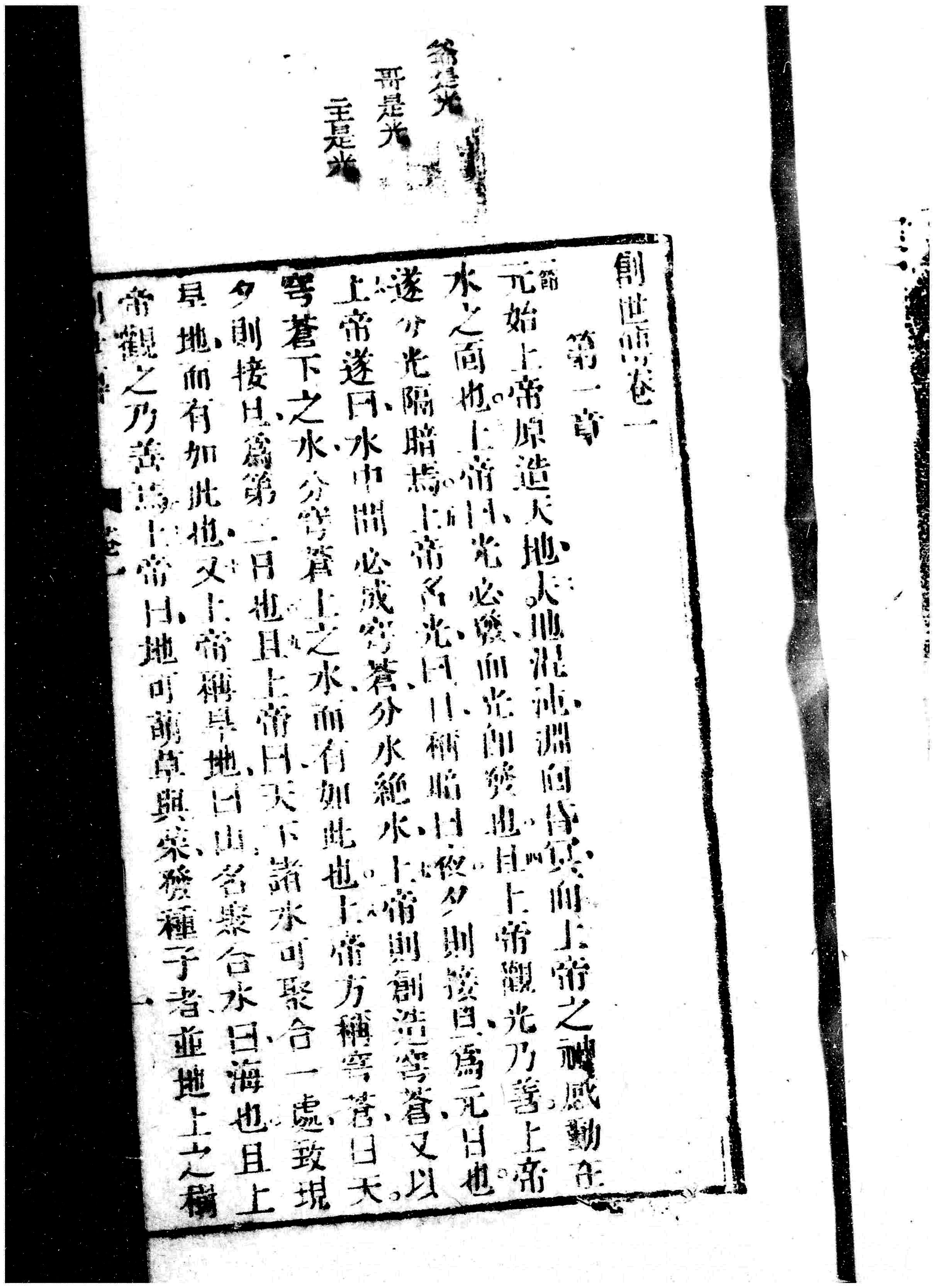 1853年欽定舊遺詔聖書卷之一 創世記 1 章 1 節到 1 章 11 節