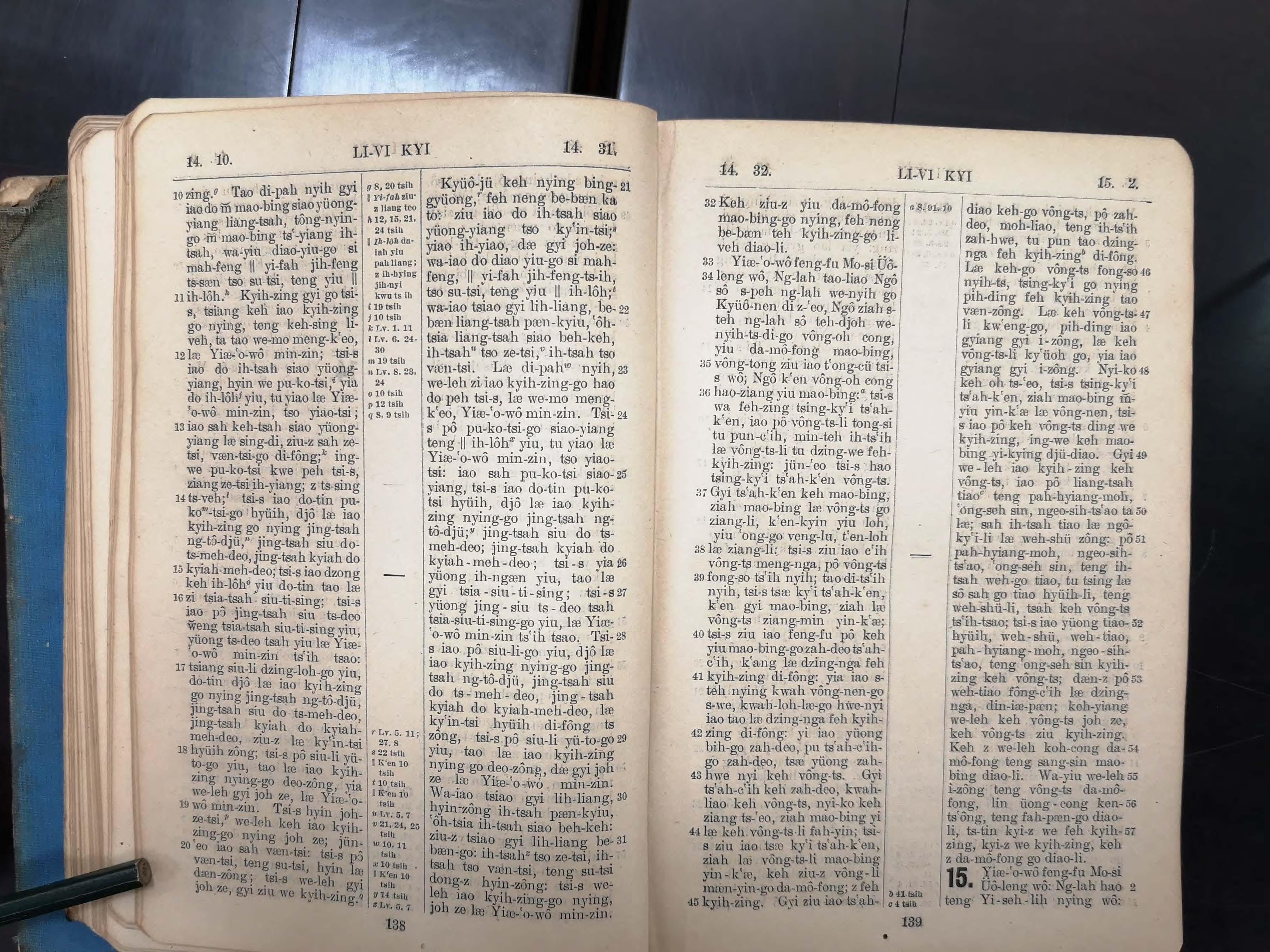 1923年寧波話羅馬字舊約全書 利未記 14 章 10 節到 15 章 2 節