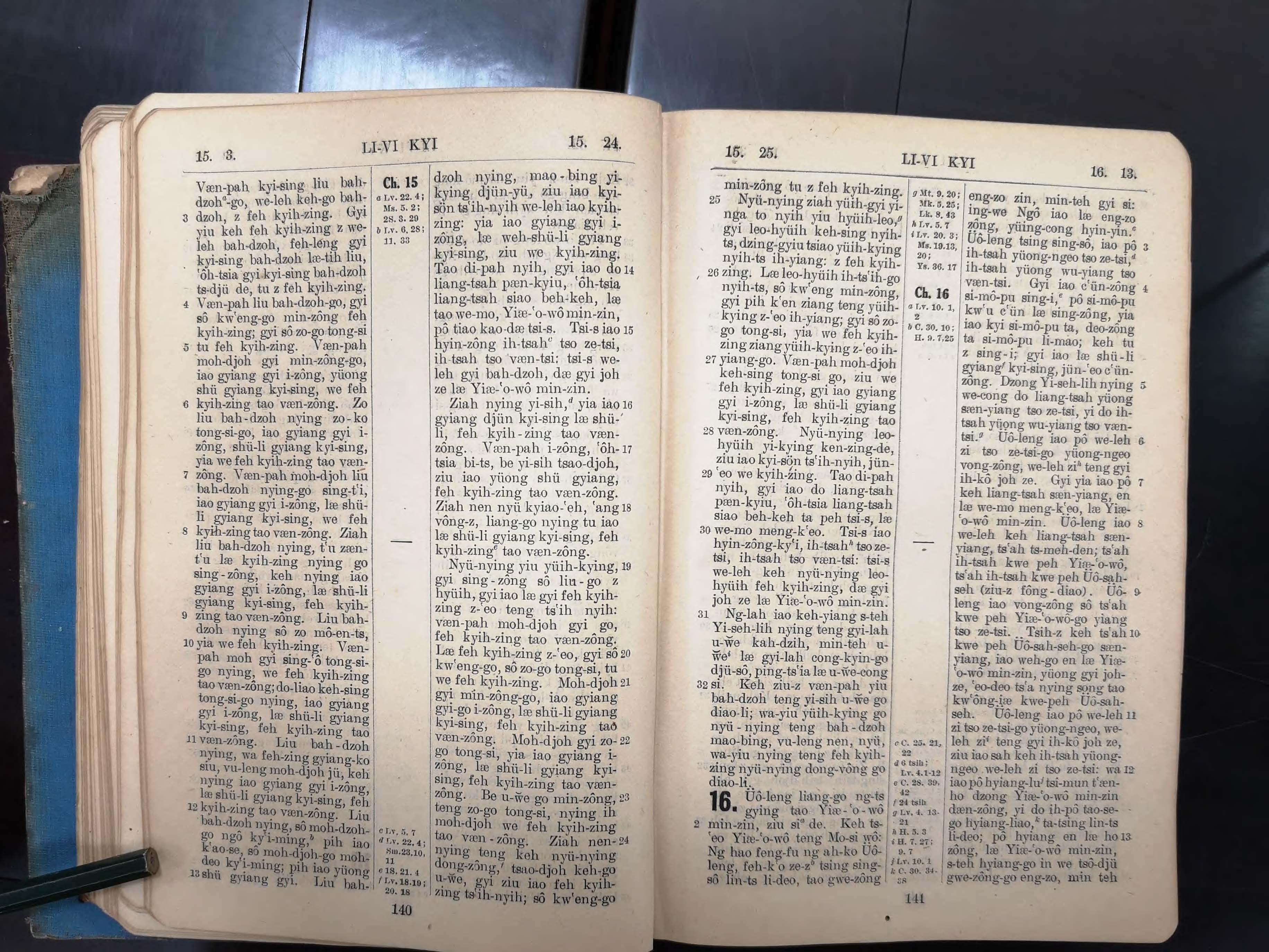 1923年寧波話羅馬字舊約全書 利未記 15 章 3 節到 16 章 13 節