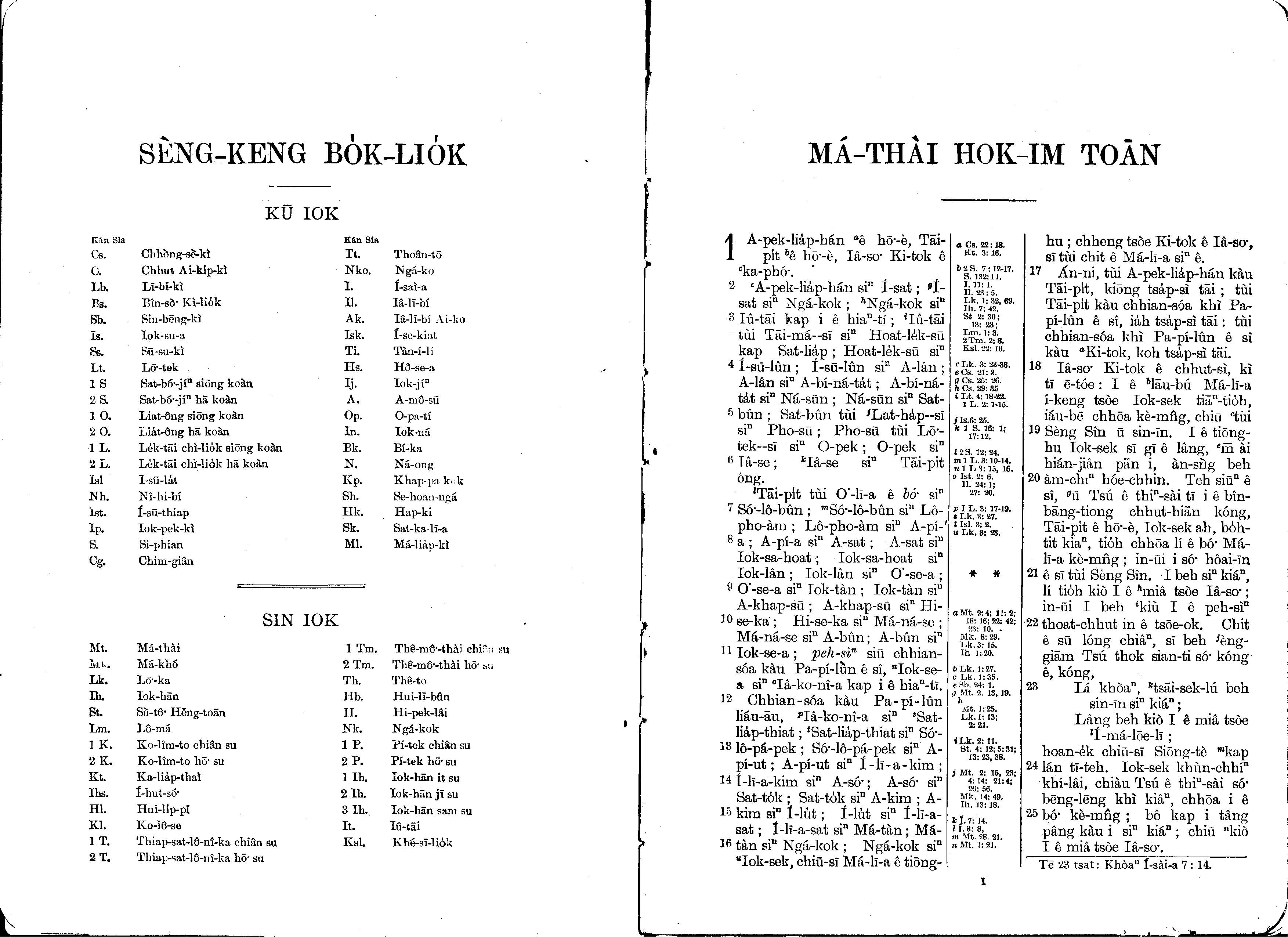 1930年馬雅各舊約全書+巴克禮新約全書 馬太福音 1 章 1 節到 1 章 25 節