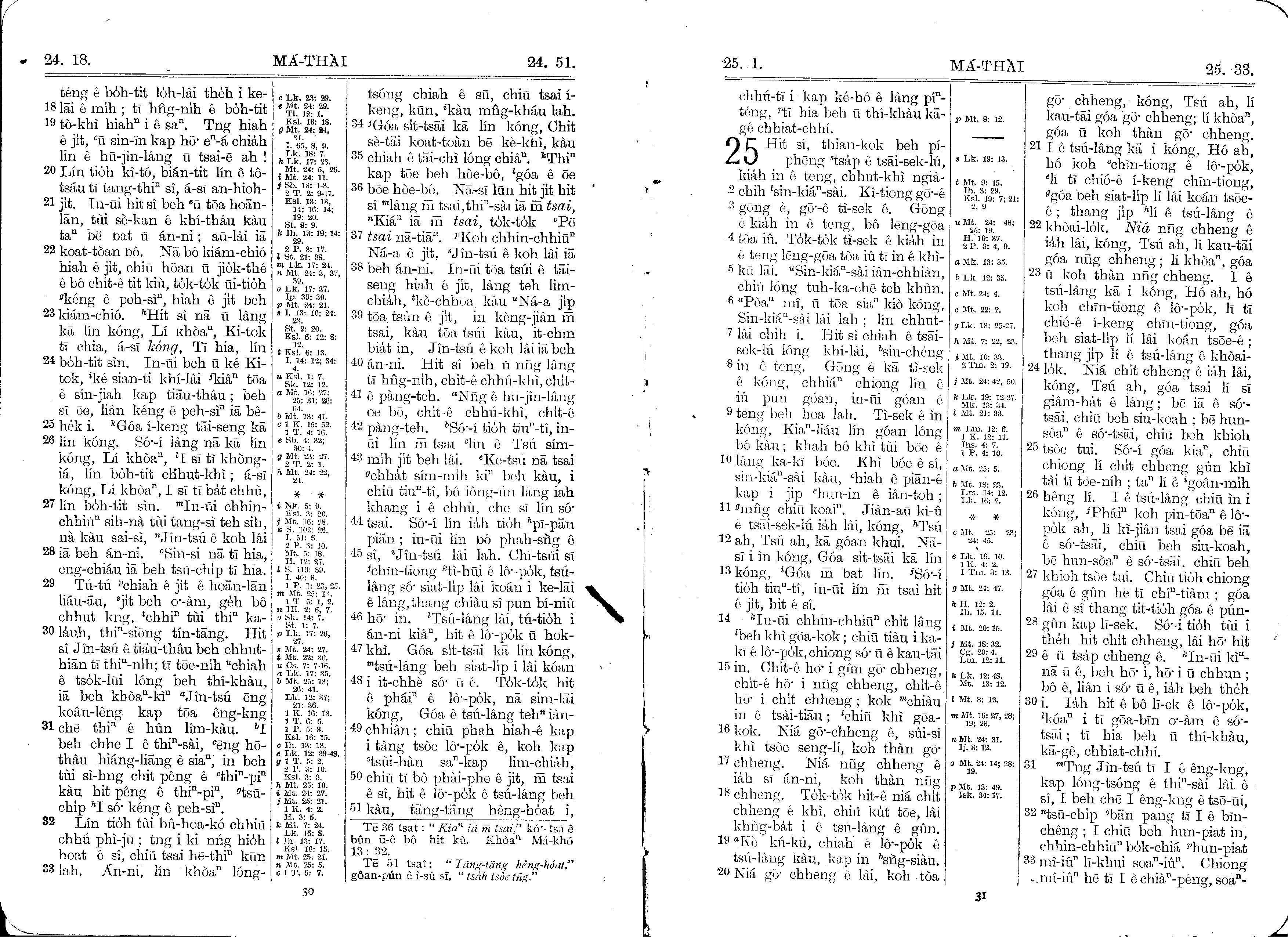 1930年馬雅各舊約全書+巴克禮新約全書 馬太福音 24 章 18 節到 25 章 33 節