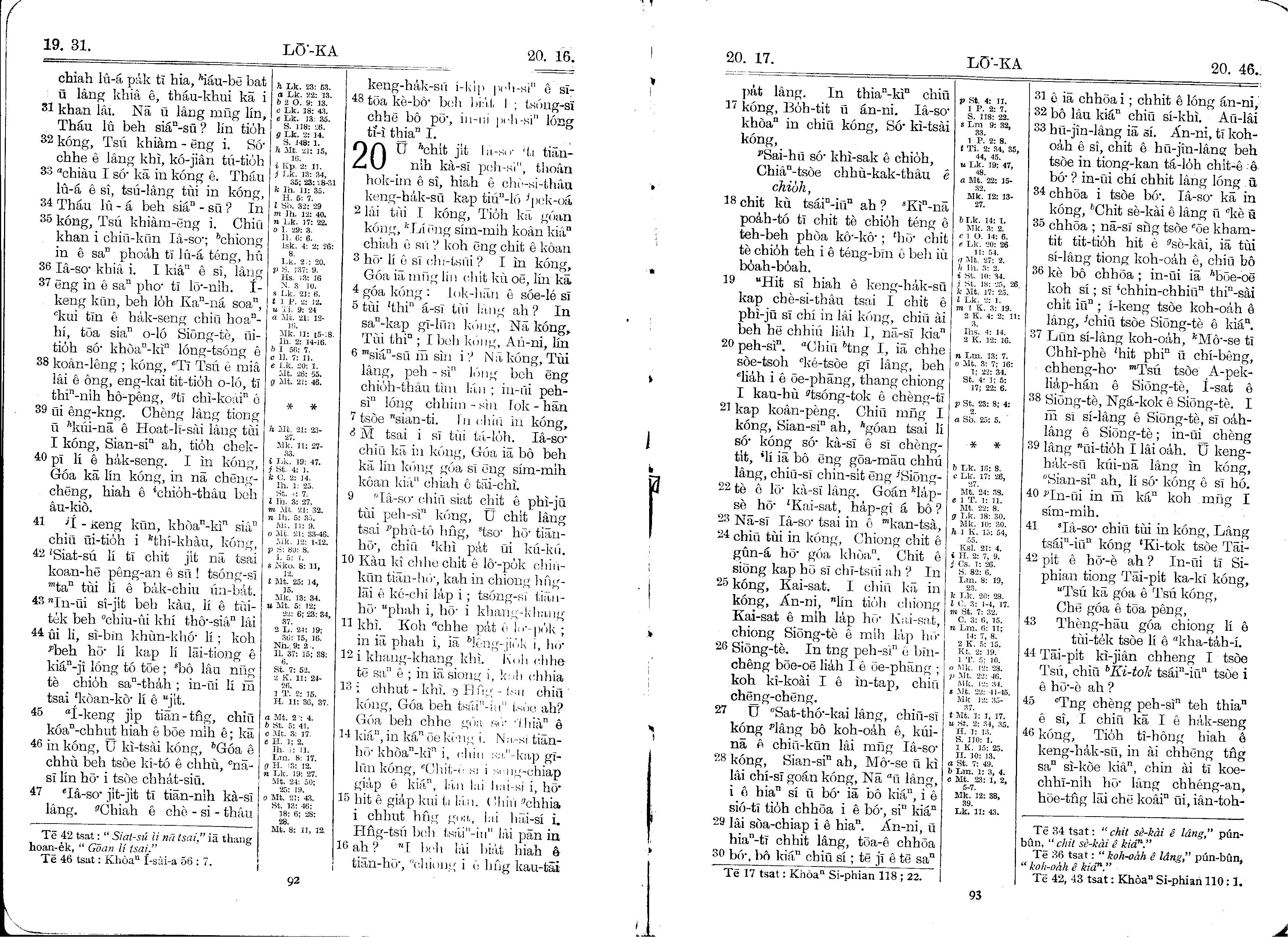 1930年馬雅各舊約全書+巴克禮新約全書 路加福音 19 章 31 節到 20 章 46 節