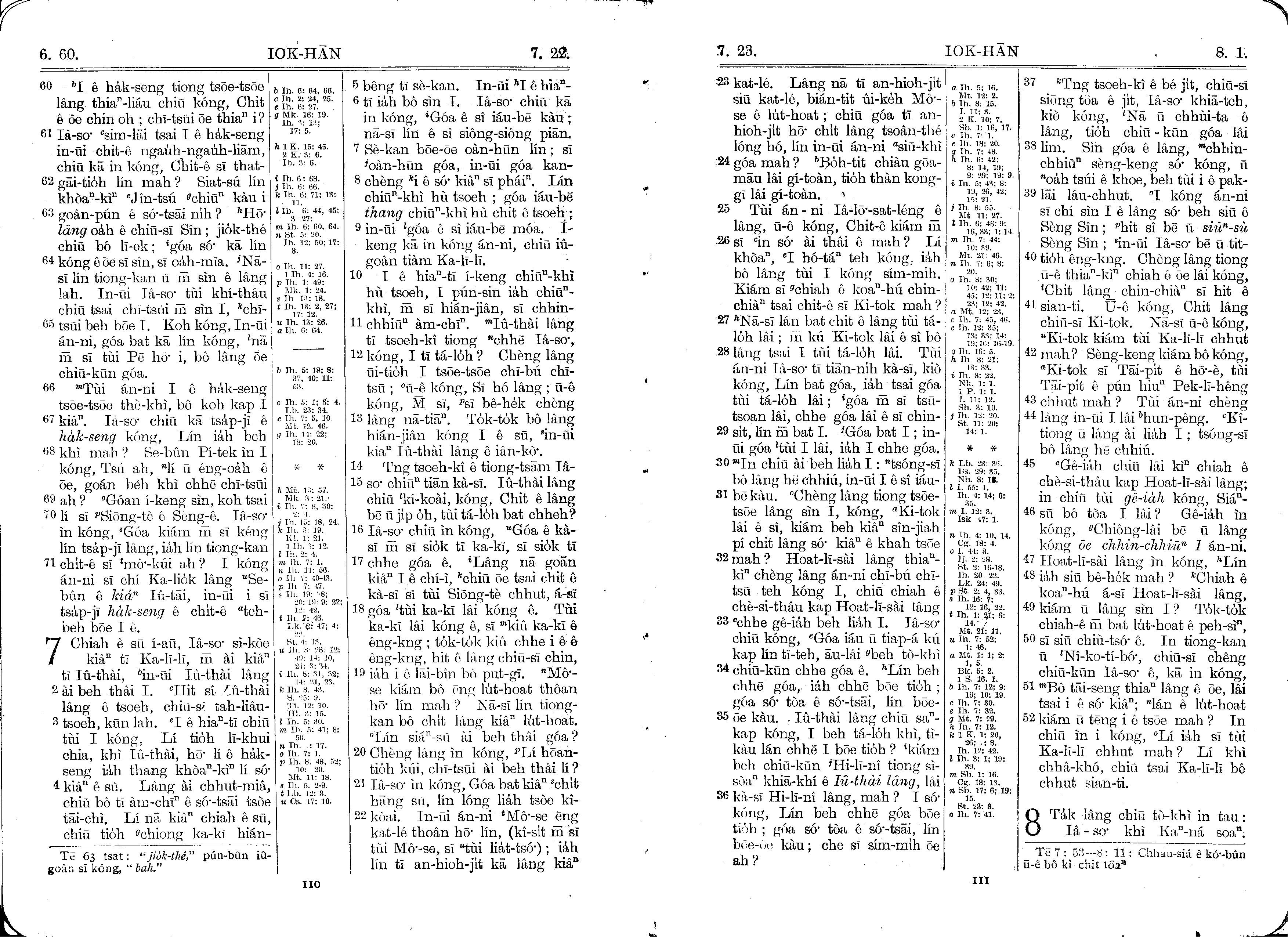 1930年馬雅各舊約全書+巴克禮新約全書 約翰福音 6 章 60 節到 8 章 1 節