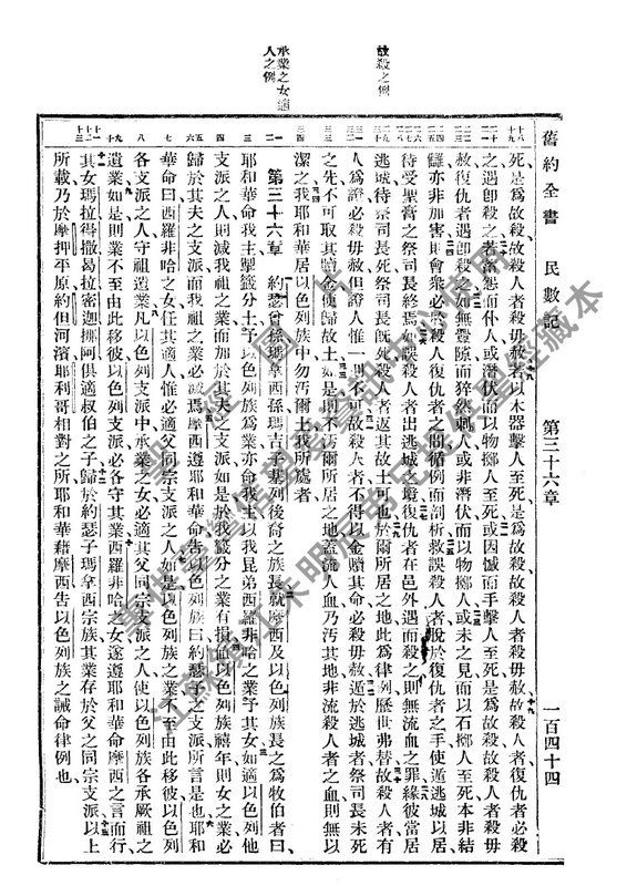 1934年新舊約全書(文理和合本) 民數記 35 章 到 36 章